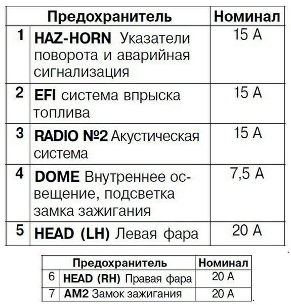 Схема предохранителей автомобилей Toyota Corolla, Marino, Ceres, Trueno