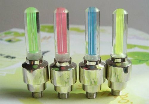 Самые простые светящиеся колпачки состоят из резьбы, с помощью которой накручиваются на золотник или ниппель колеса. Благодаря стандартной резьбе такое устройство подходит на все виды колес любого транспорта - автомобили, мотоциклы, велосипеды и скутера.