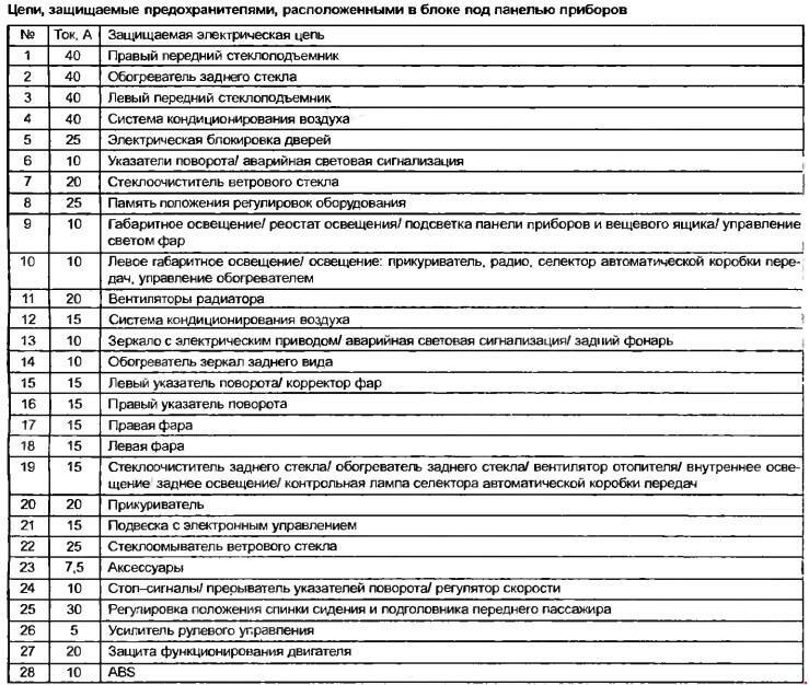 Схема предохранителей Renault Safrane
