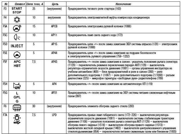 Блок предохранителей и реле в салоне