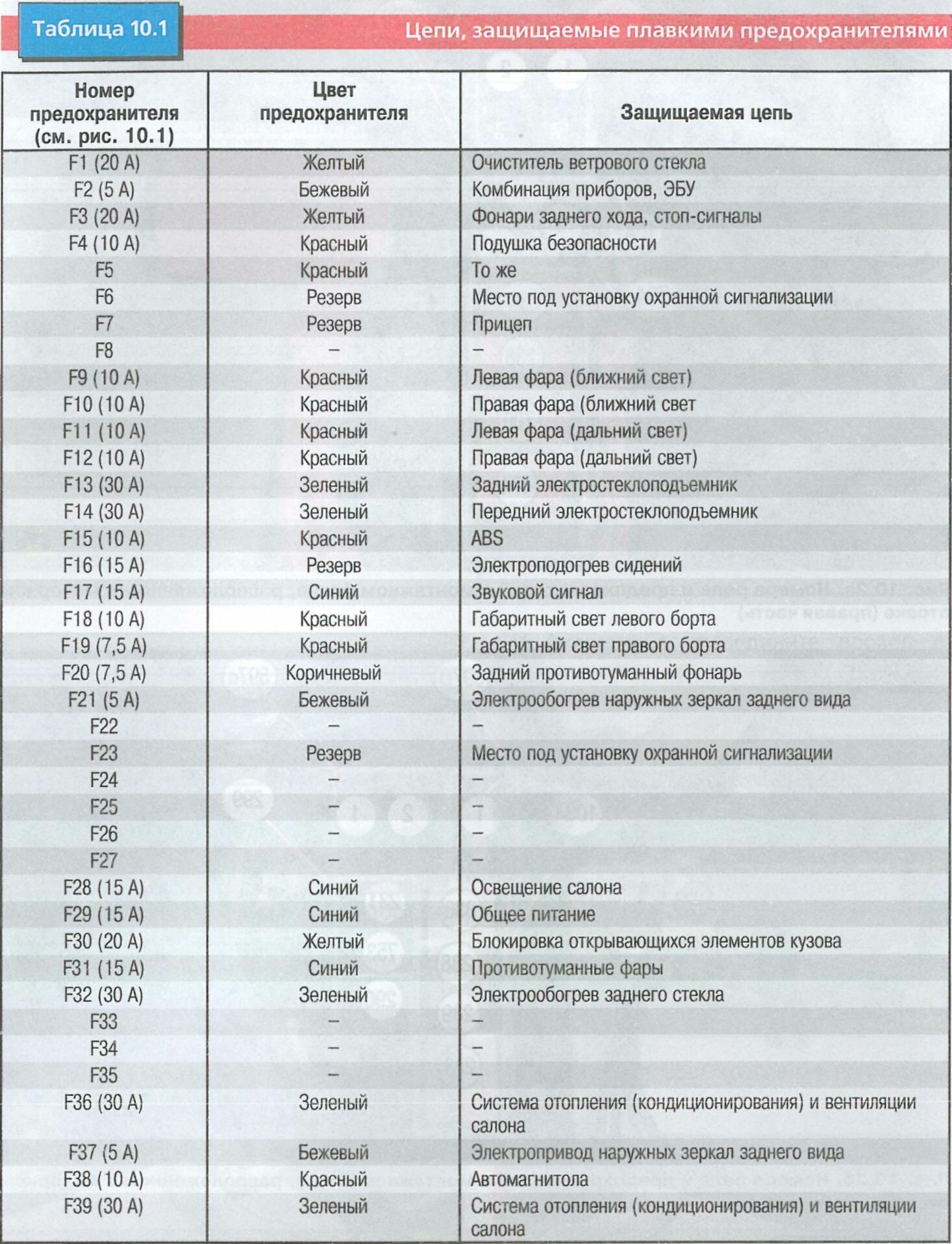 - Коричневый, 30А — система впрыска топлива (бензин)