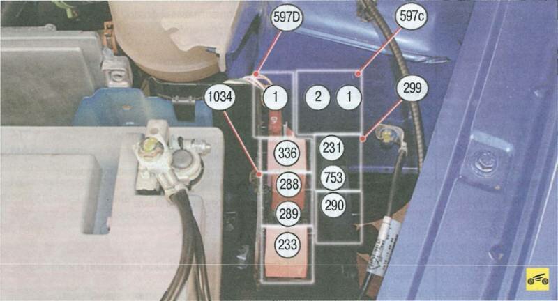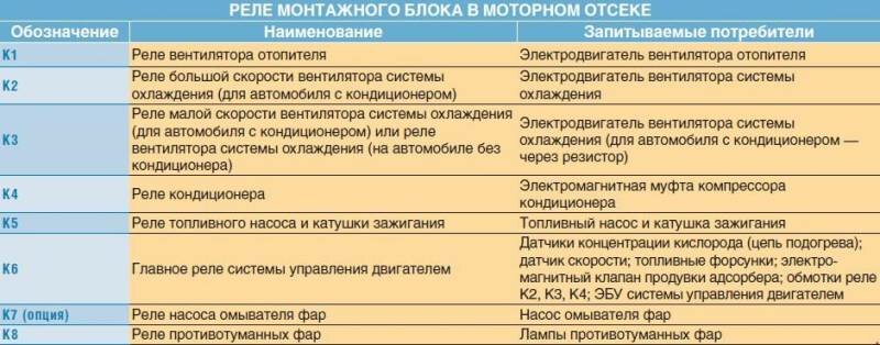 Монтажный блок реле и предохранителей в моторном отсеке