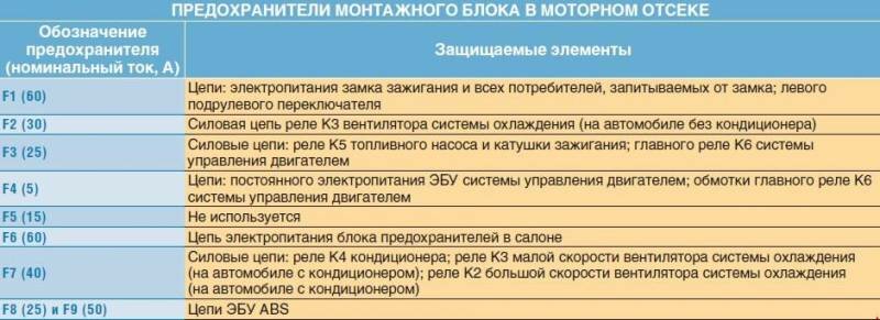 Схема предохранителей ВАЗ