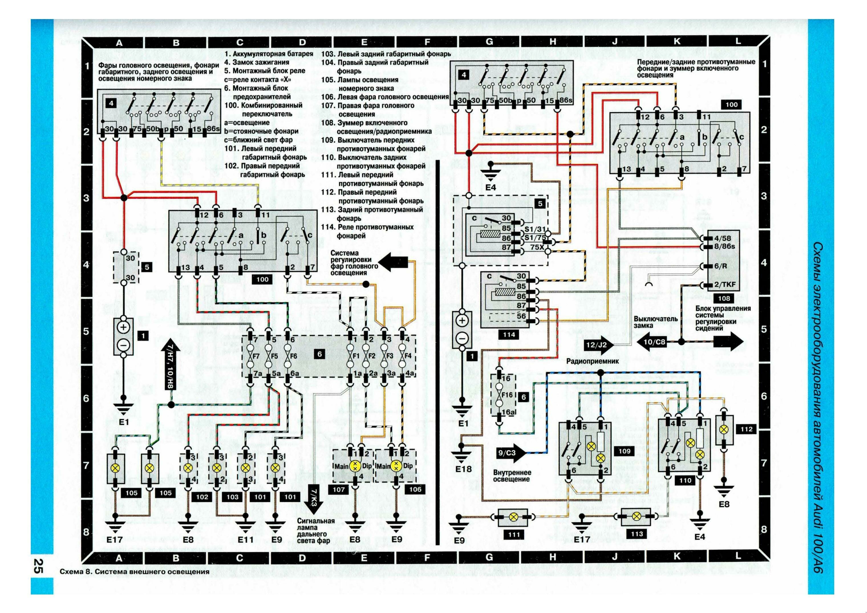 Система внешнего освещения - схема на Ауди 100