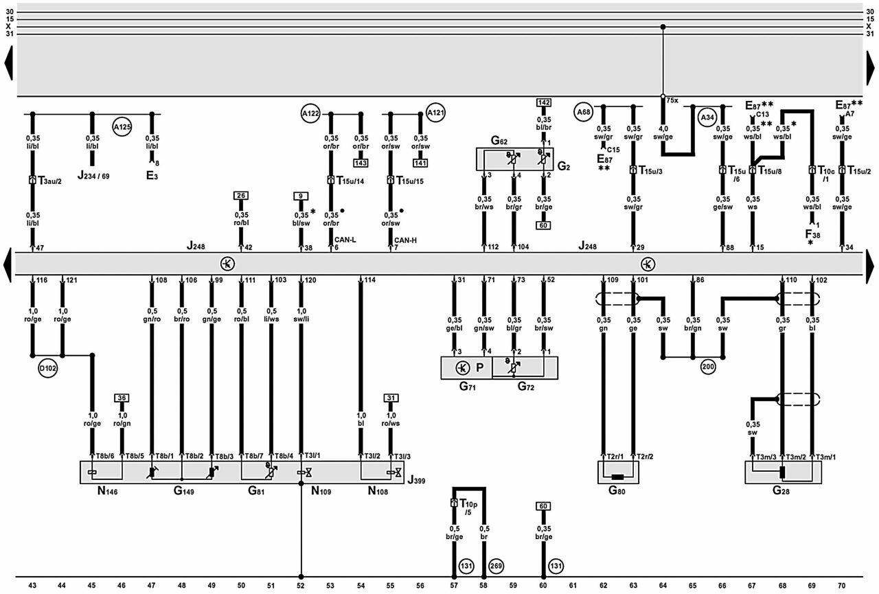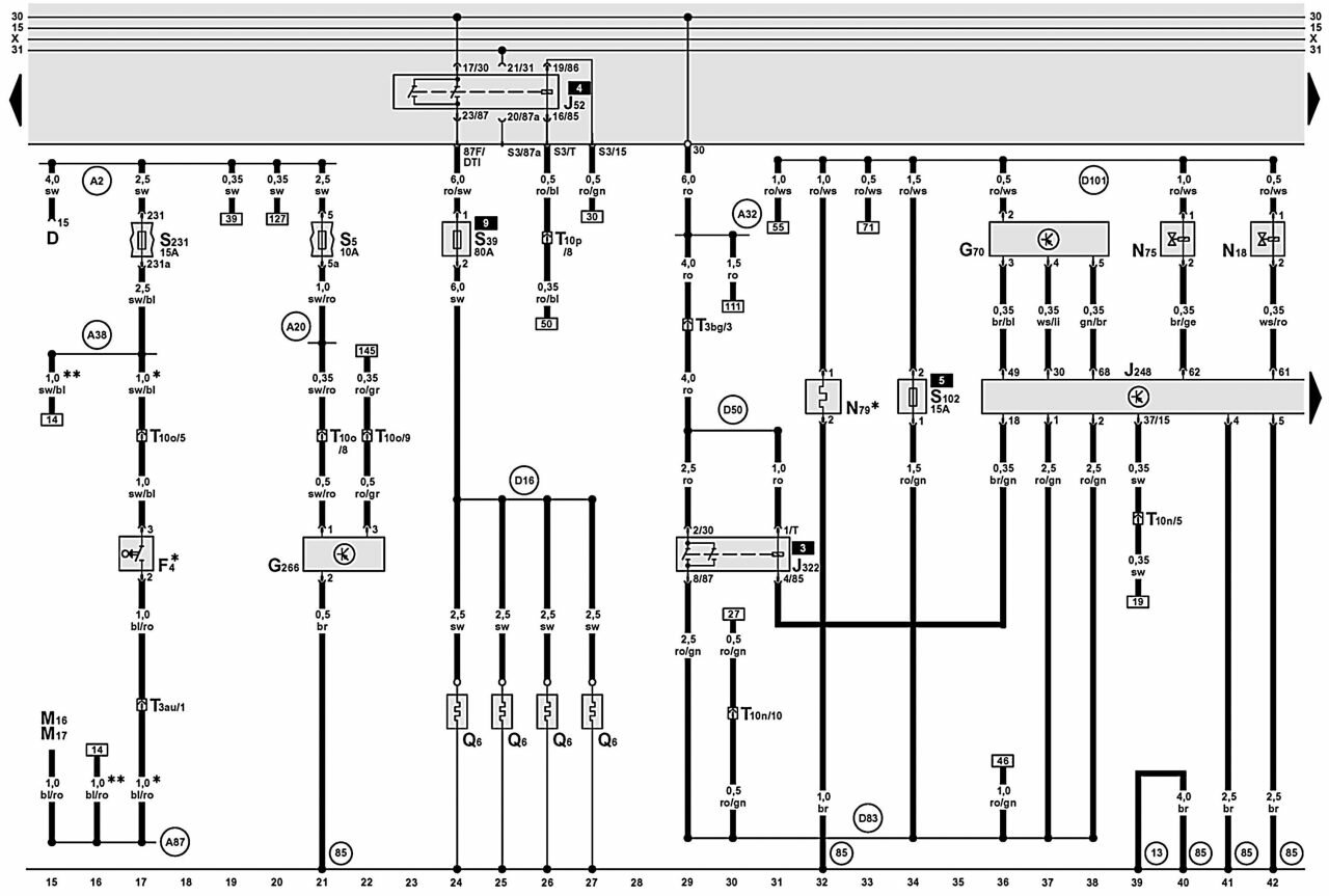 A52 – соединение положительное –2– (30) в электропроводке панели приборов