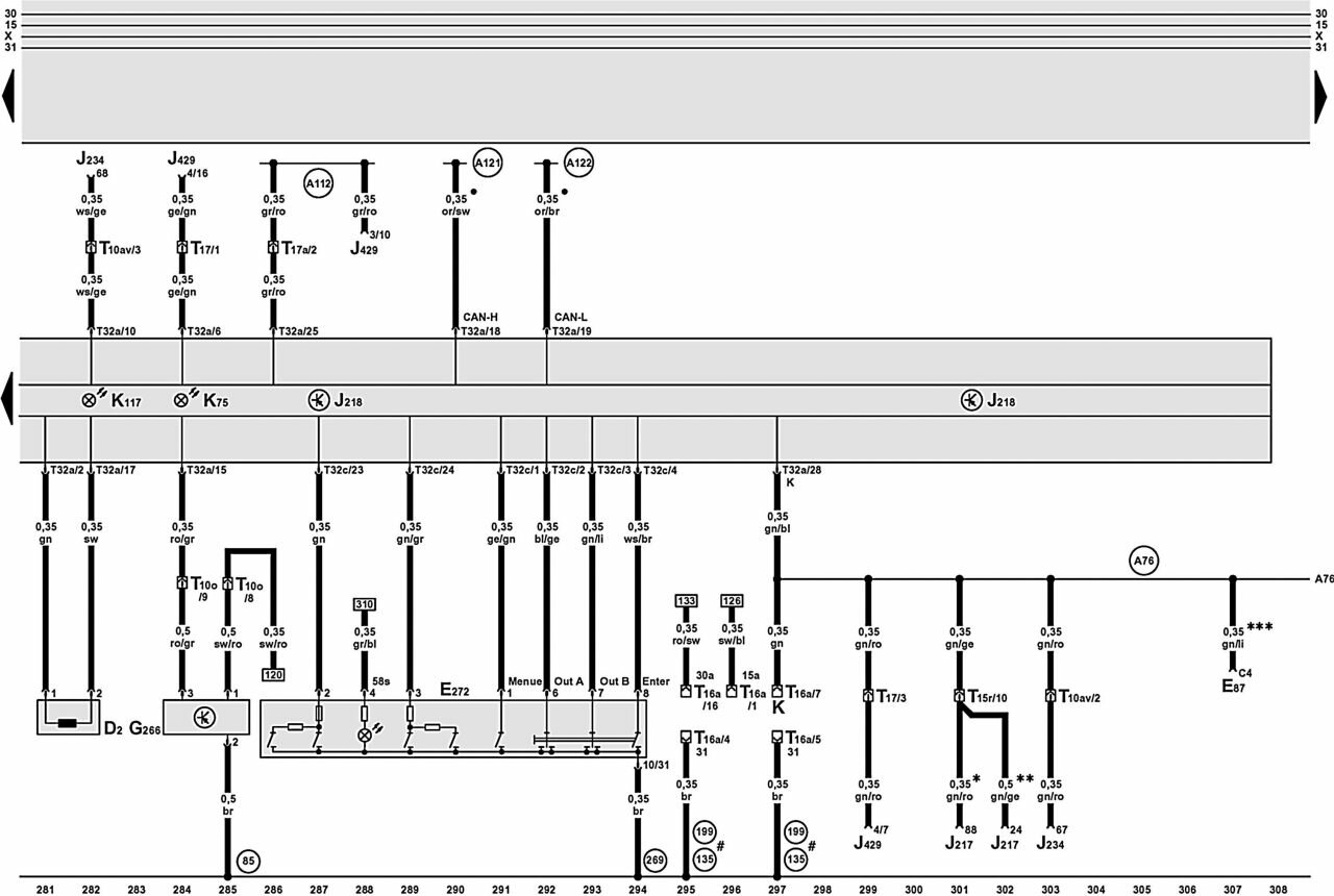 A76 – соединение (K–диагностирование) в электропроводке панели приборов