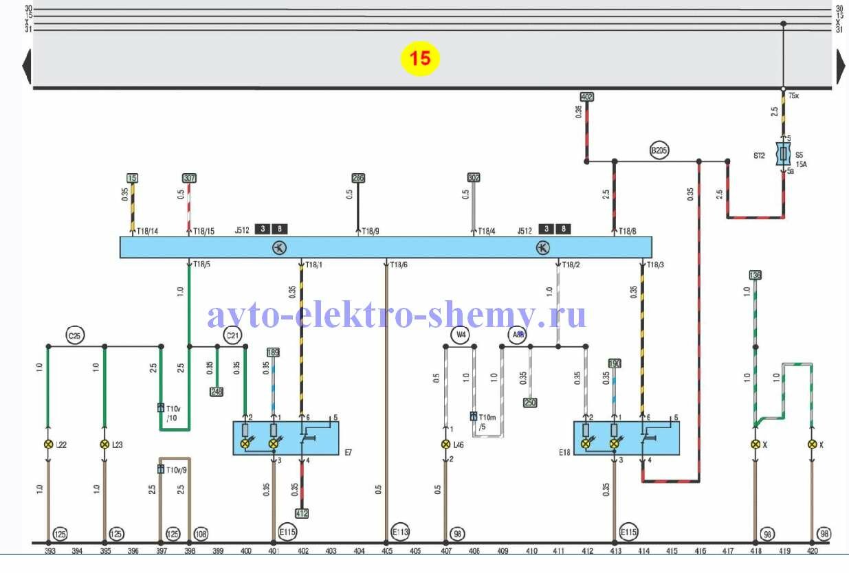 Q12 – соединение положительное (30a), в электропроводке стеклоподъемник/ система замков с центральным управлением и дверной выключатель освещения