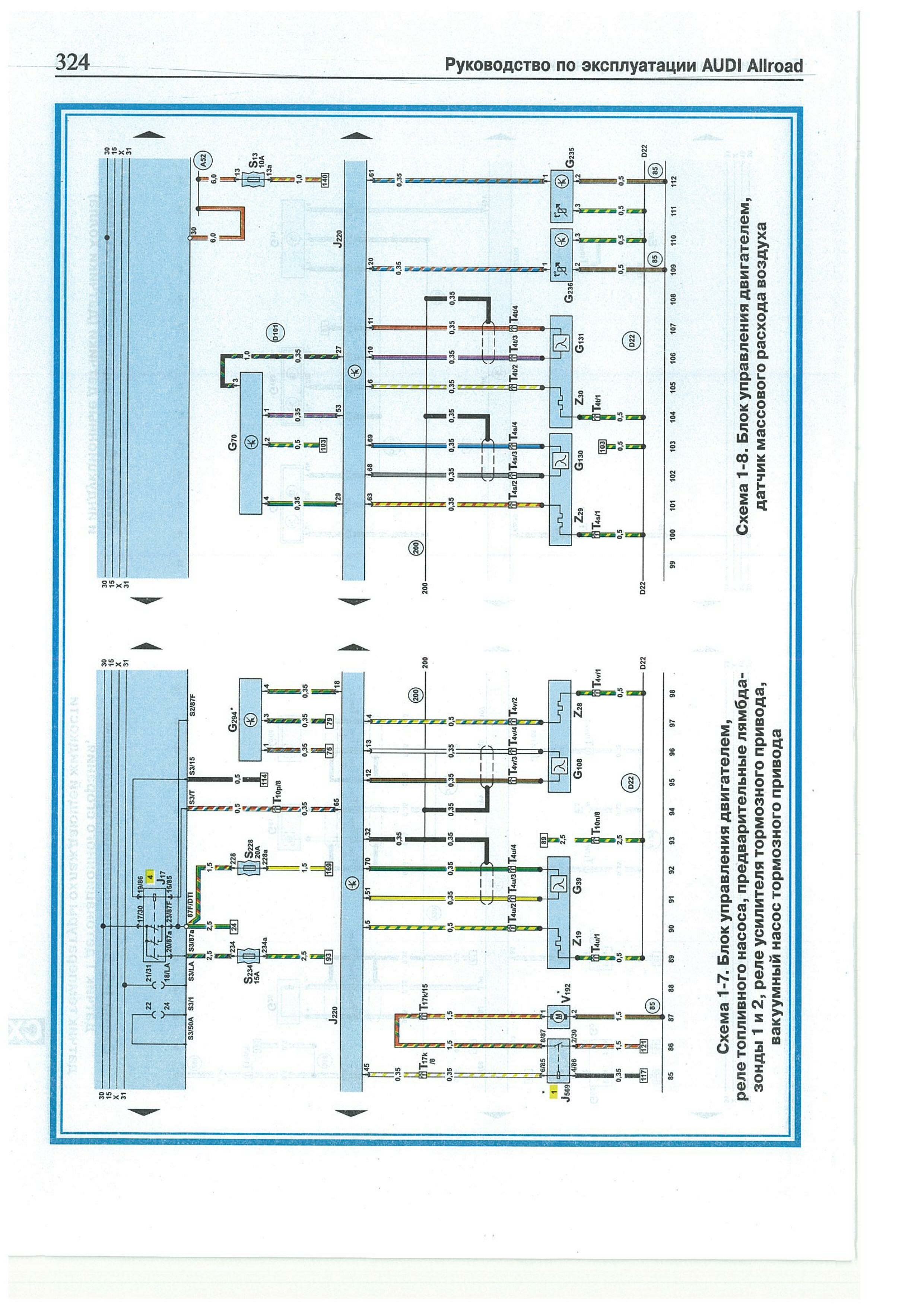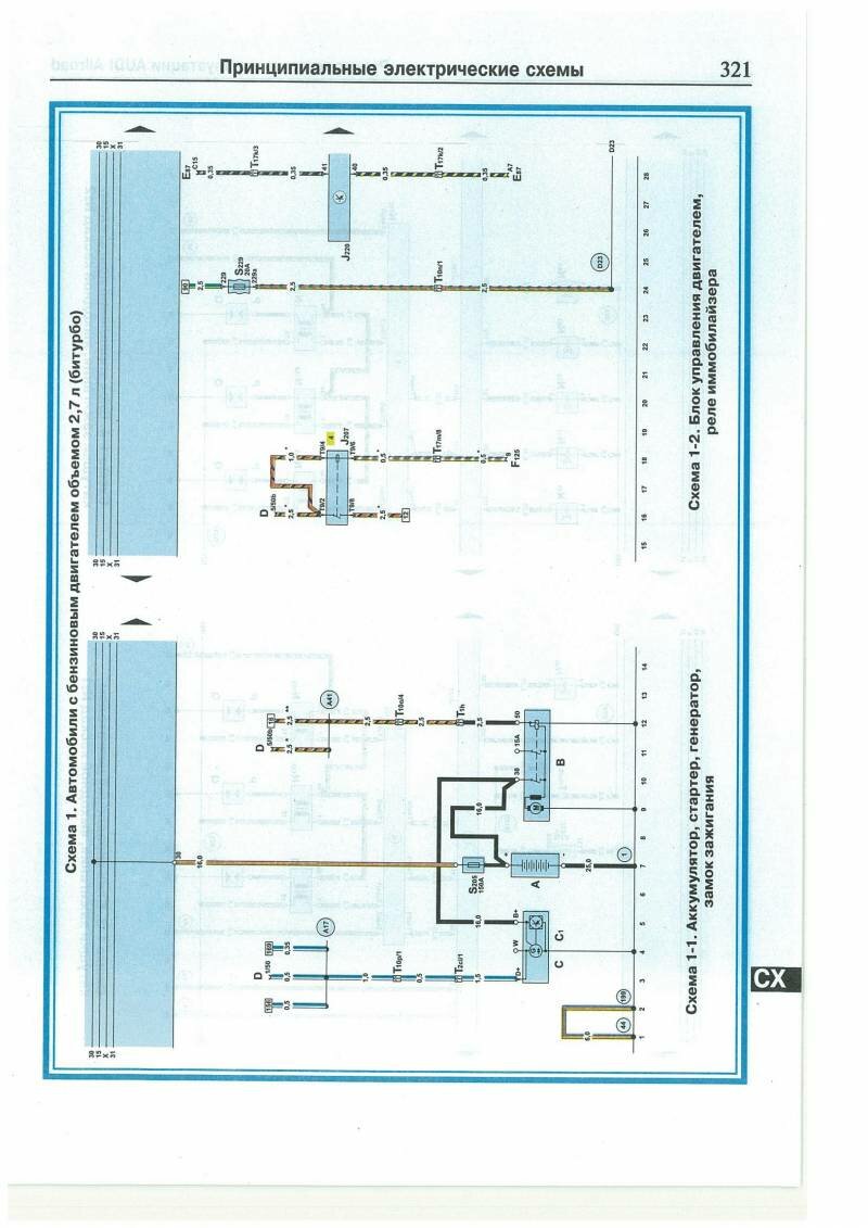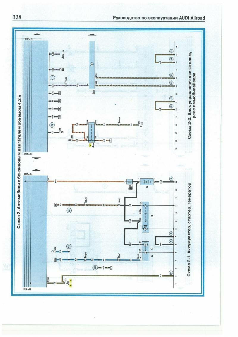 В этой статье вы найдете кучу интерестных, а главное полезных схем электрооборудования на Ауди Олроуд выпуском с 2000 года. Основой для Allroad quattro стал универсал A6 Avant quattro. При этом кузов и шасси подверглись серьезным изменениям. Allroad наделили пневматичес кой подвеской, способной менять дорожный просвет в пределах от 142 до 208 мм. Кузов опоясывает плас тиковый обвес — защита от повреждений краски на бездорожье. Трансмиссия quattro с центральным дифференциалом Torsen, в обычных условиях распределяющим момент поровну между передней и задней осями. На Audi Allroad quattro ставили V-образные турбомоторы: бензиновый 2,7 л (250 л. с.) и турбодизель объемом 2,5 л (180 л. с.). В 2002 году гамма моторов пополнилась 4,2-литровым 300-сильным V8. V6 оснащалась 6-ступенчатой «механикой» и 5-скоростным автоматом. А модификация V8 получила только автоматическую коробку.