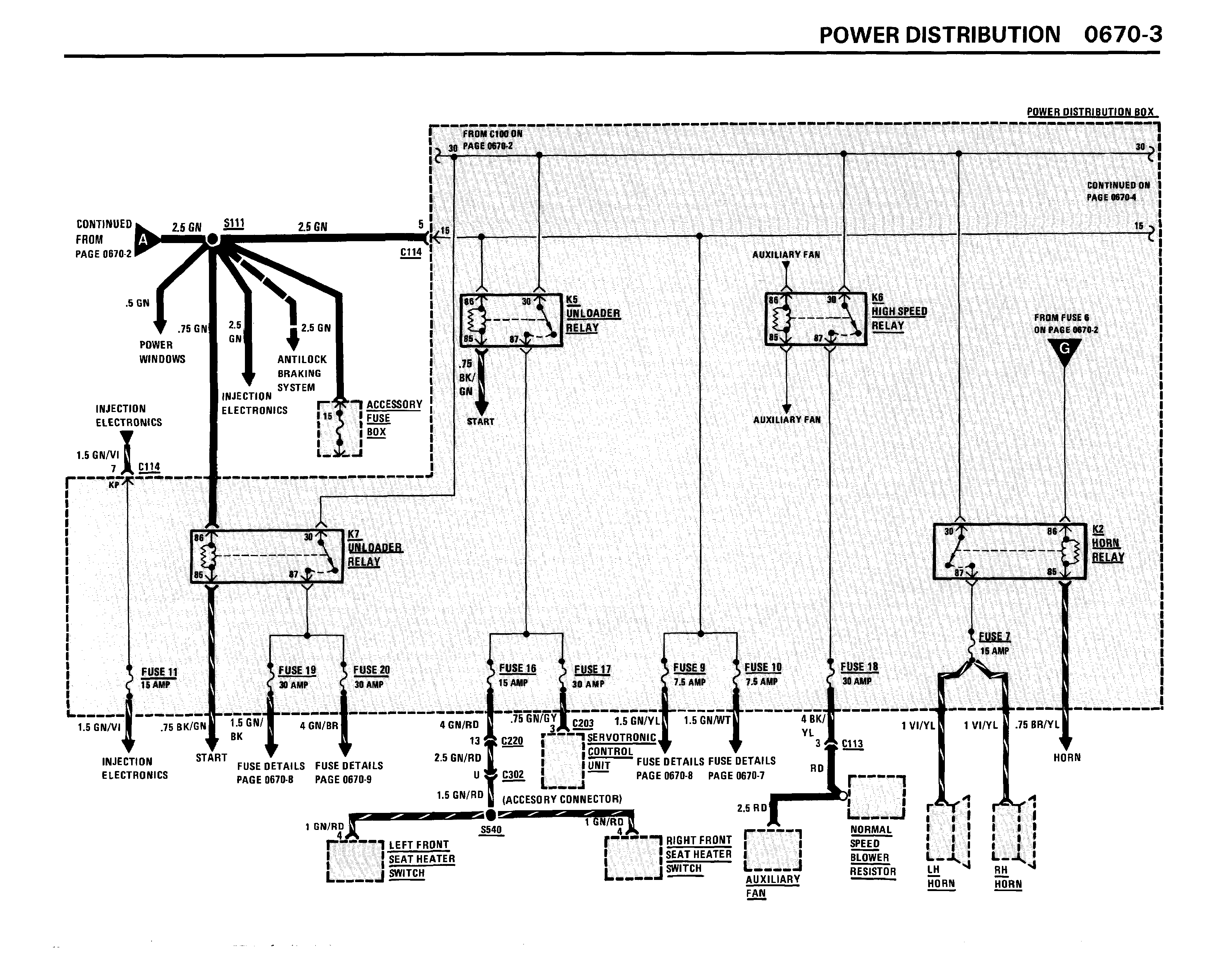 Продолжение схемы блока предохранителей