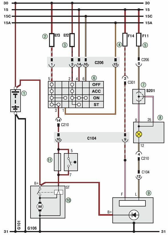Электросхема генераторной установки и системы пуска двигателя Дэу Ланос