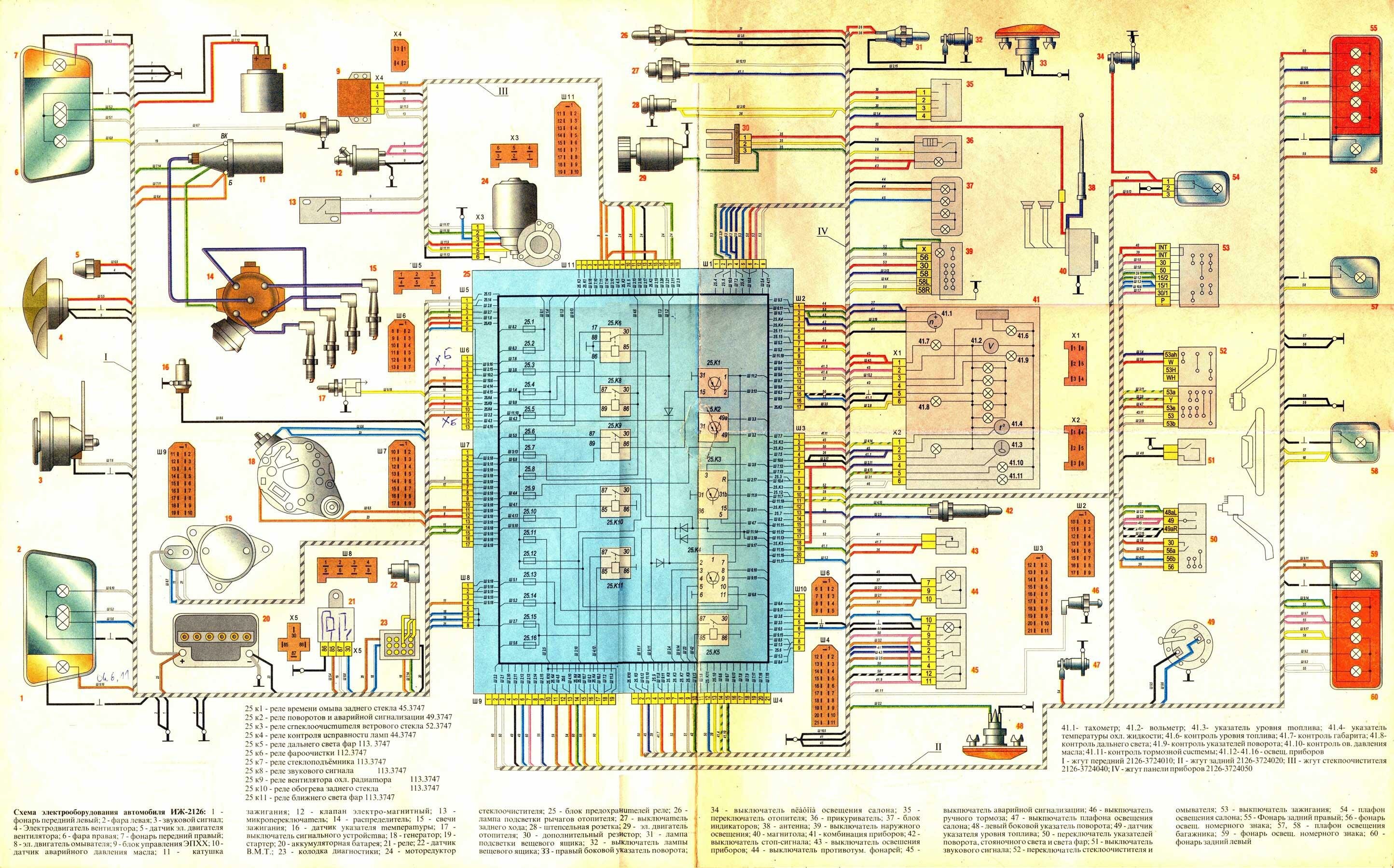 Схема электрооборудования автомобиля ИЖ-2126 (жмите для увеличения размера)