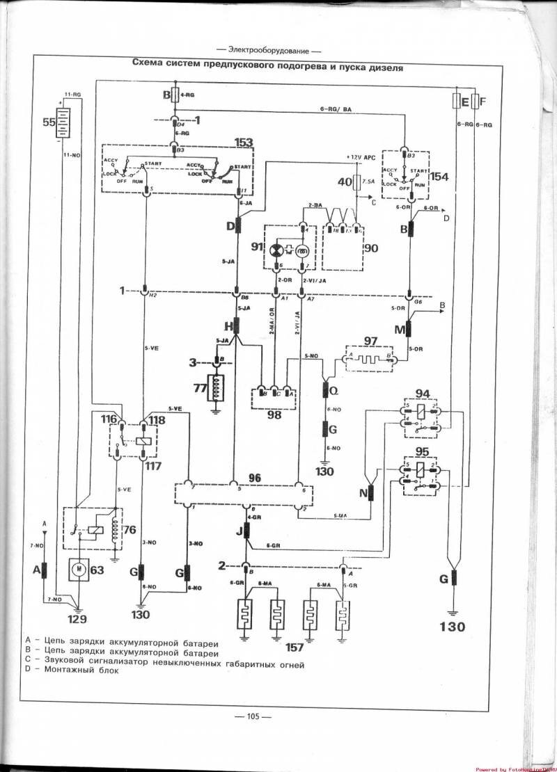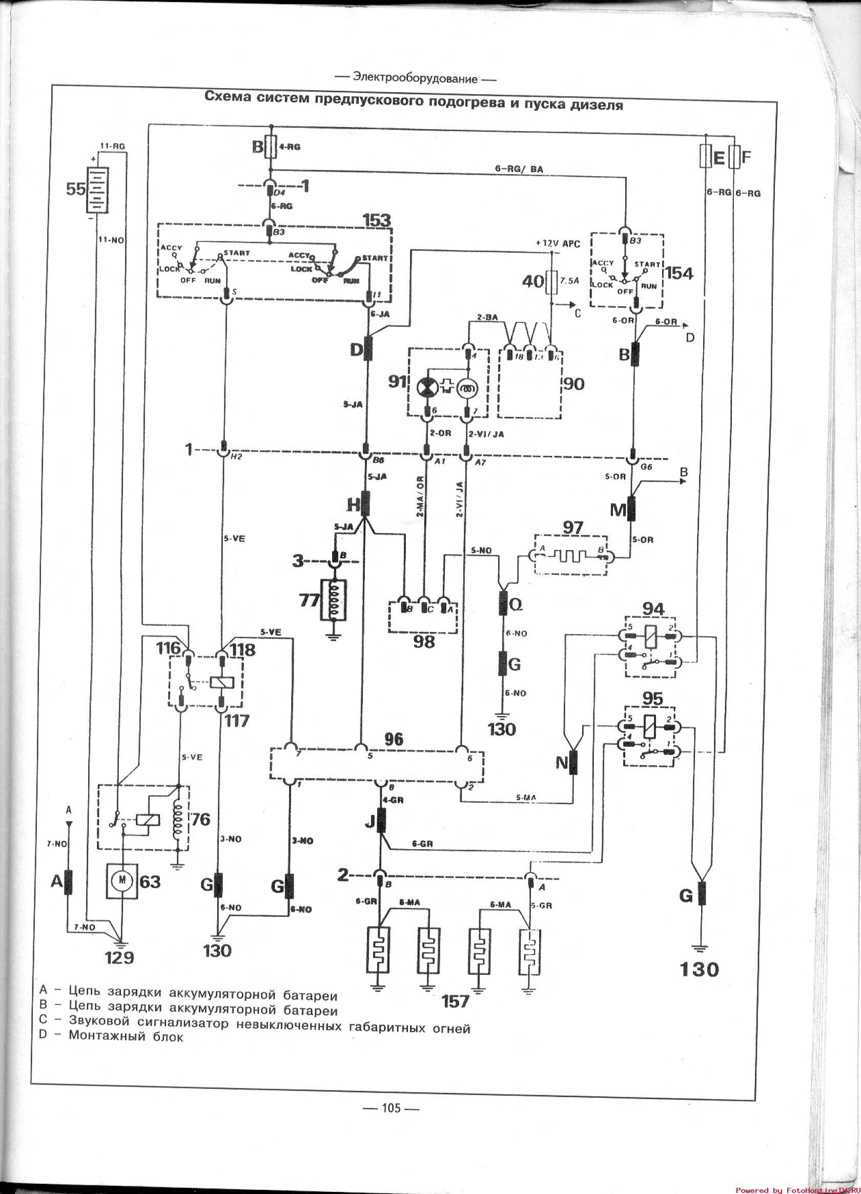 Система предпускового подогрева и пуска дизеля - электросхема