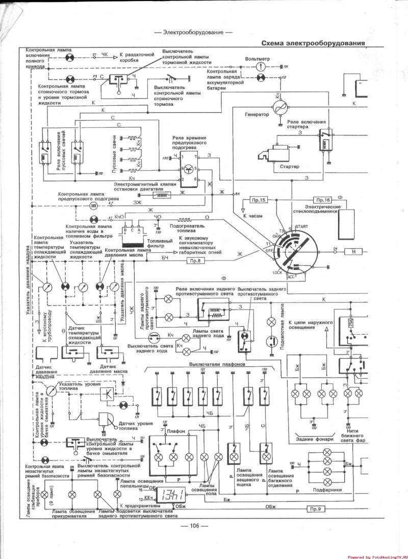Схема освещения панели приборов и контрольных приборов