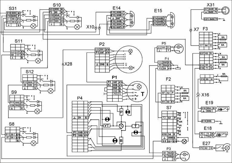 Электросхема систем световой сигнализации КАМАЗ