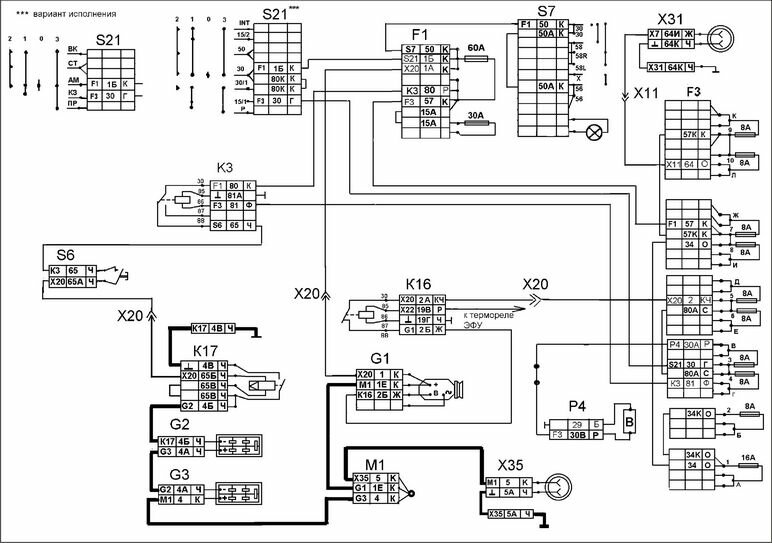 Электросхема систем энергоснабжения и очистки КАМАЗ