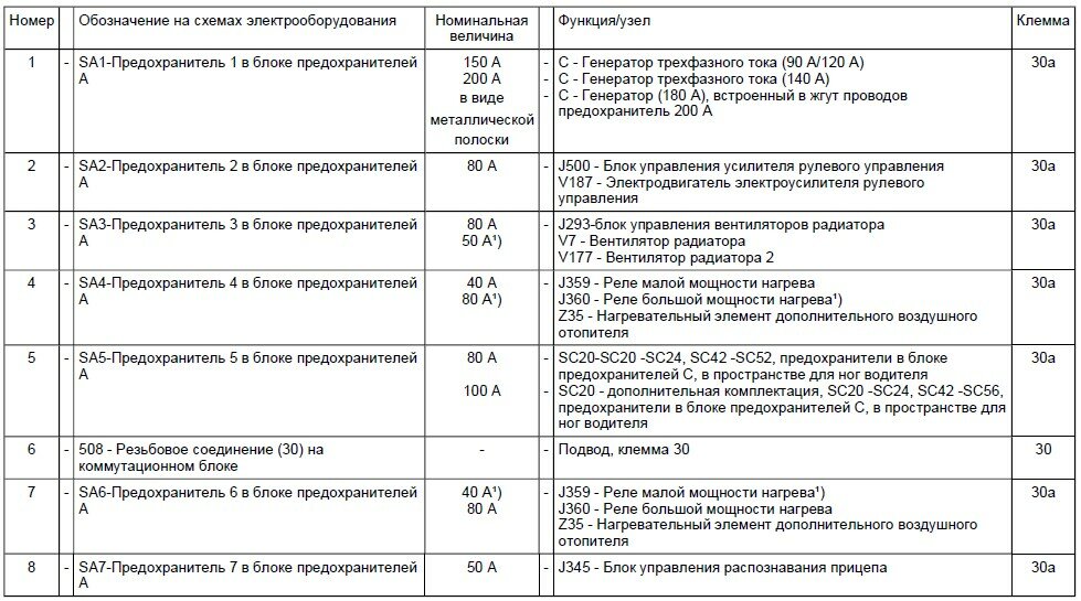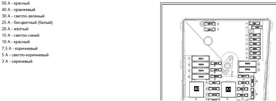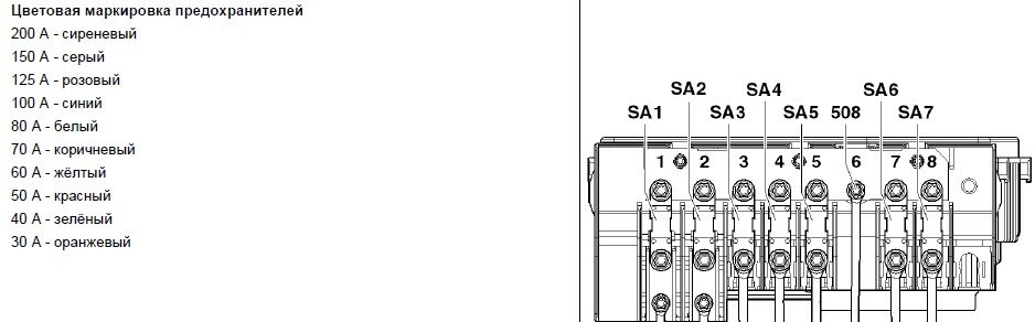 Монтажное положение предохранителей в коммутационном блоке с 2007 года