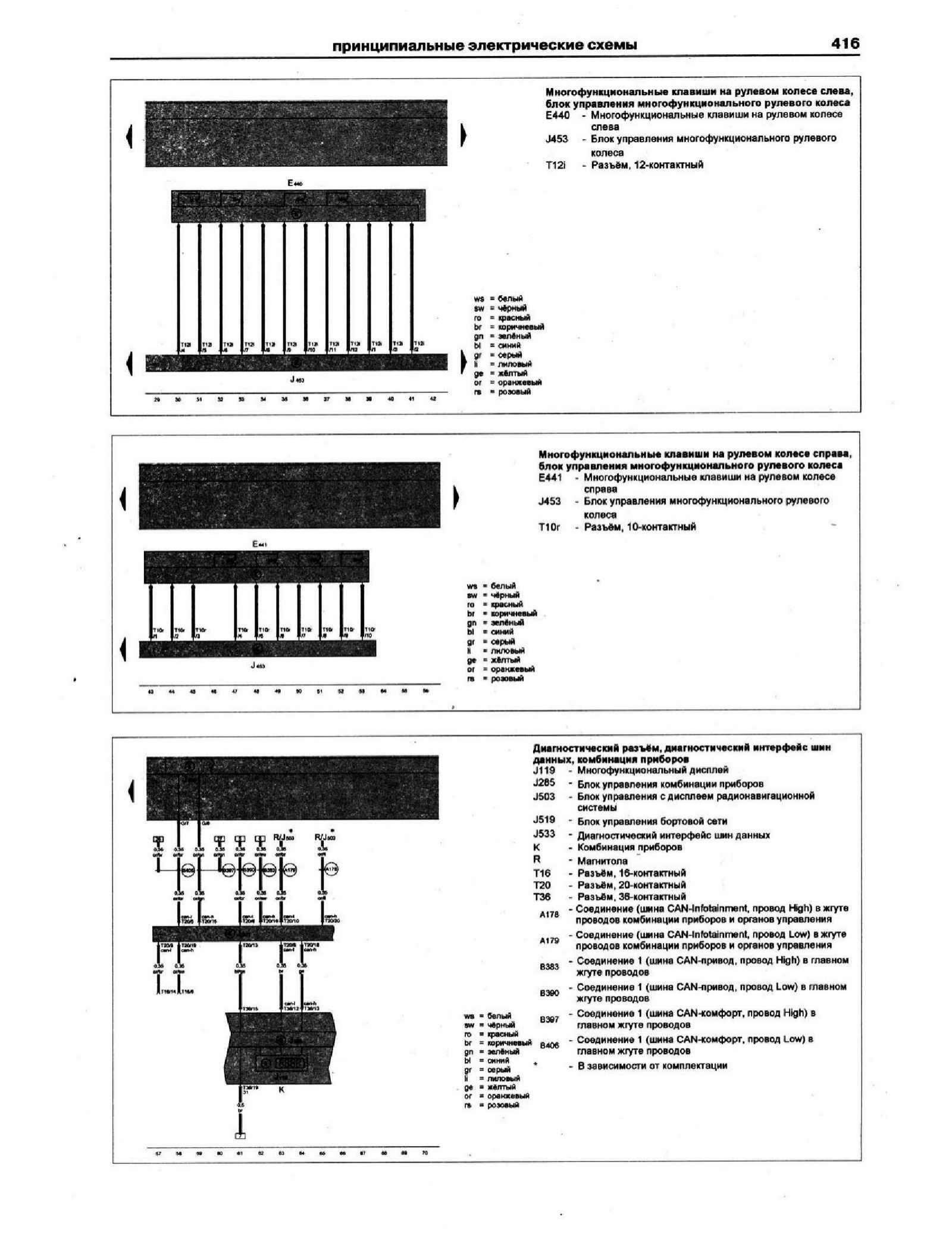 Электрические схемы различных модулей электрооборудования автомобиля Volkswagen Tiguan с 2007 года выпуска. Показана схема соединения жгутов, управления освещением, фарами, стелоподъёмниками и датчиками. Для увеличения изображения кликните на схему и увеличьте на весь экран компьютера. В конце страницы есть полный список и схема предохранителей данного авто. Все материалы предоставлены бесплатно и предназначены для самостоятельного ремонта электрооборудования Тигуан.