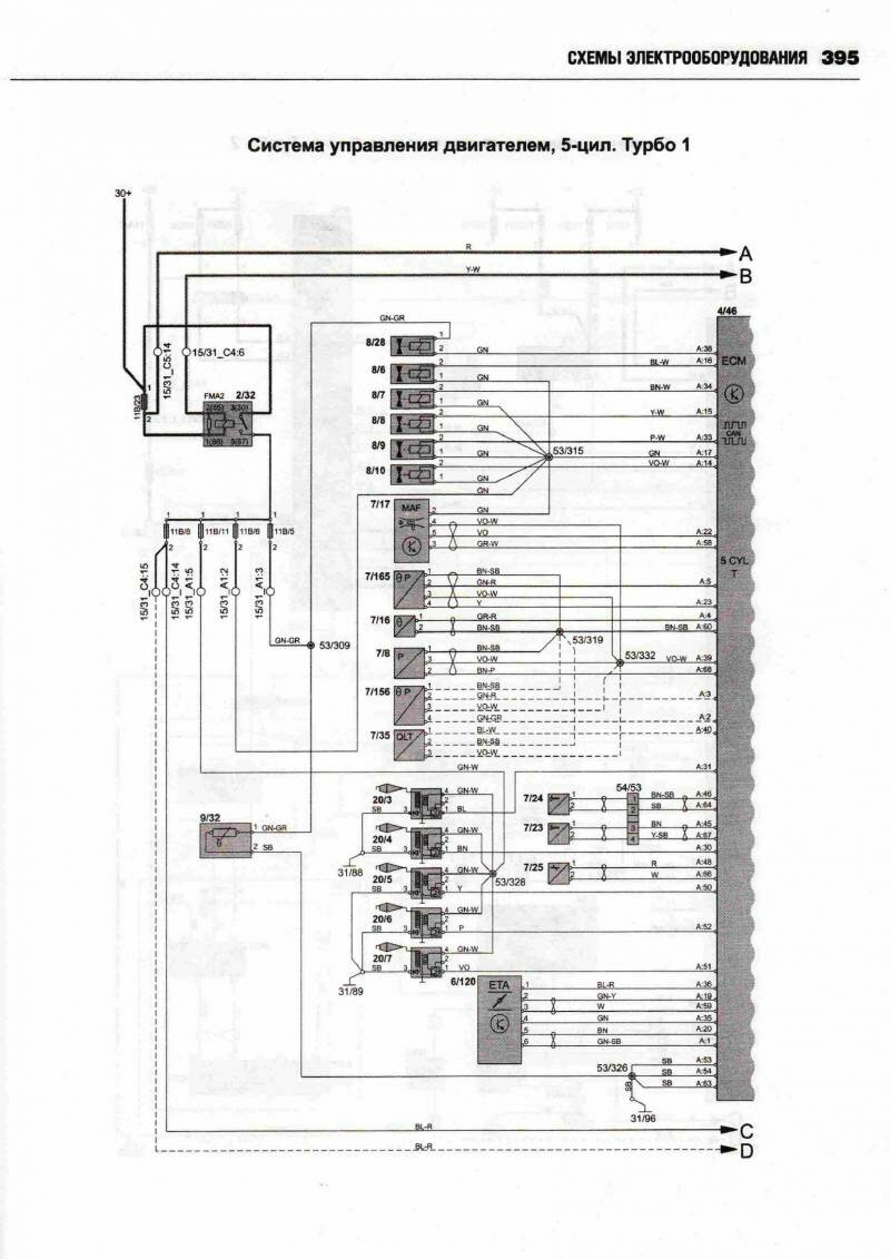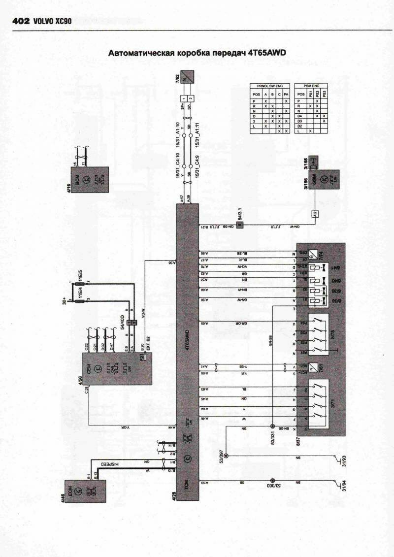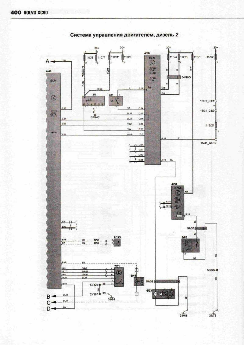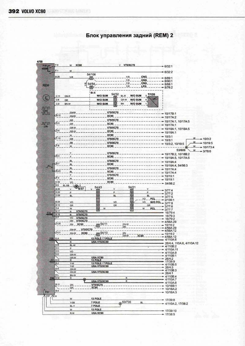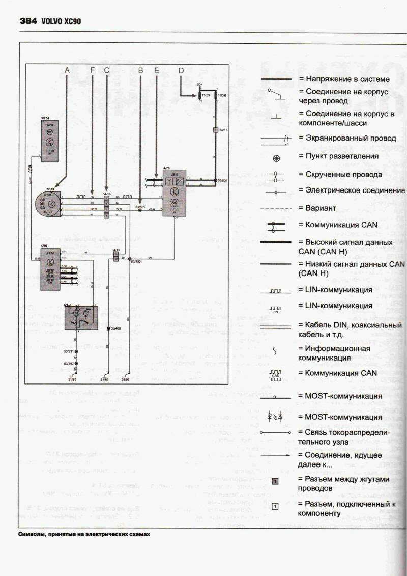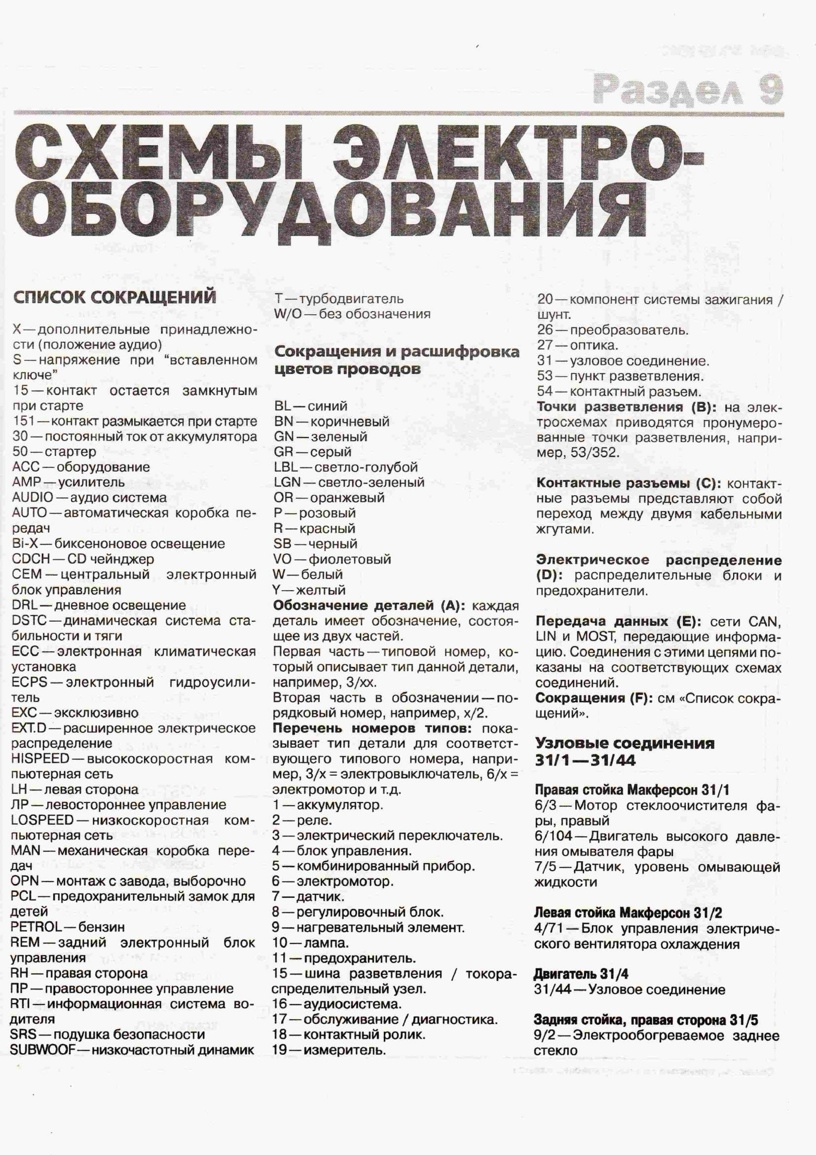 Список сокращений и расшифровка цветов проводов на схемах Volvo XC90