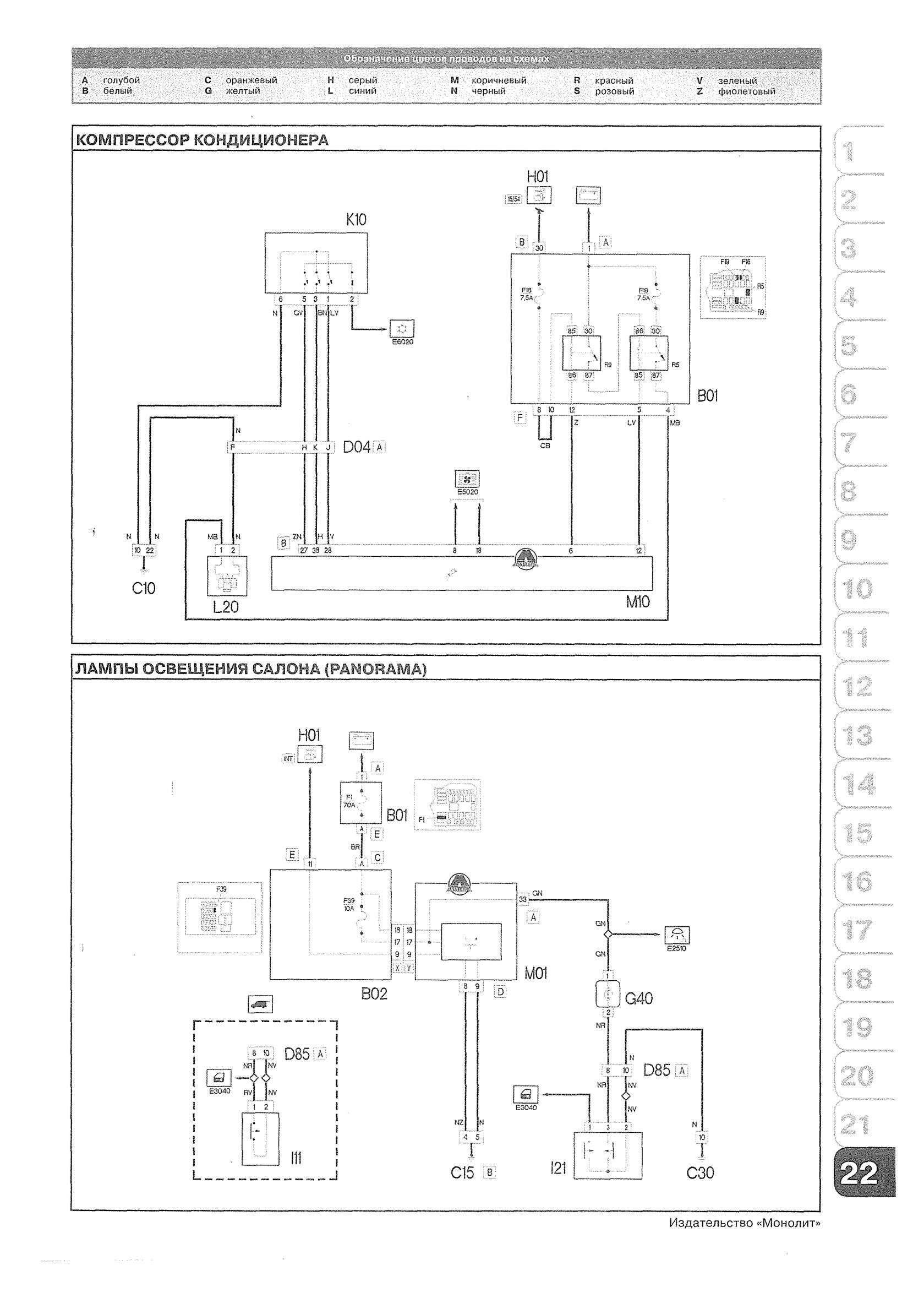 Электросхема компресосора кондиционера и ламп освещения салона