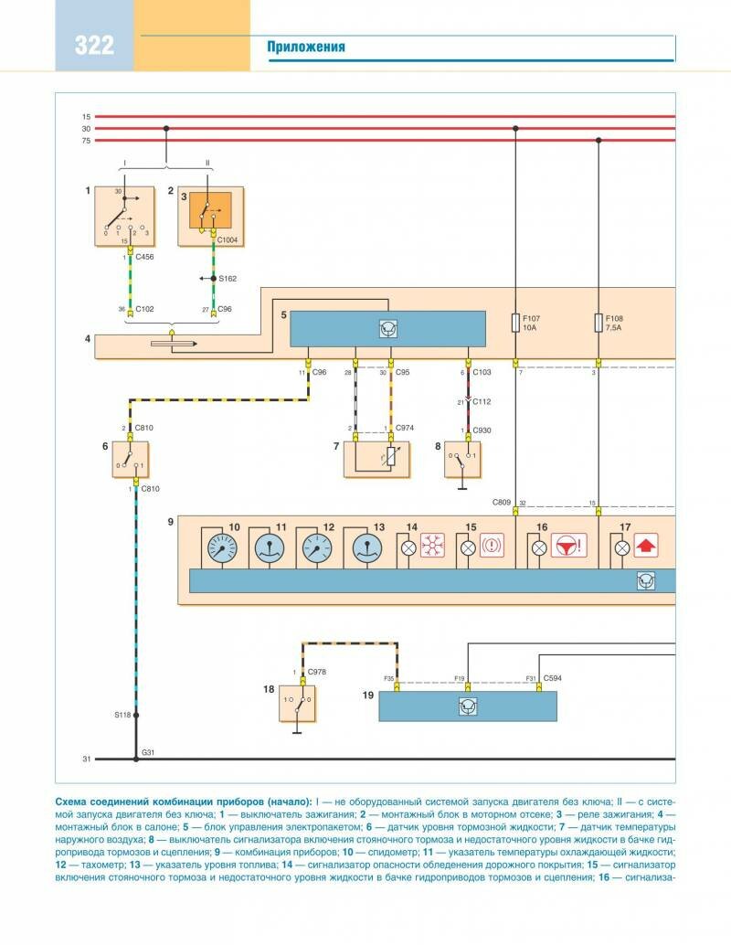 Схема соединений подсветки панели приборов