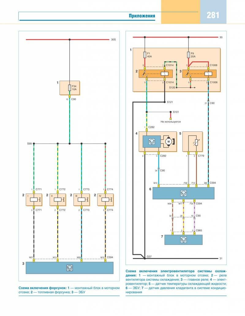 Схема подключения форсунок и вентилятора охлаждения