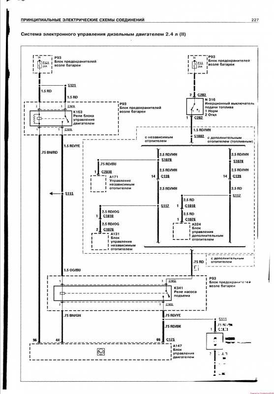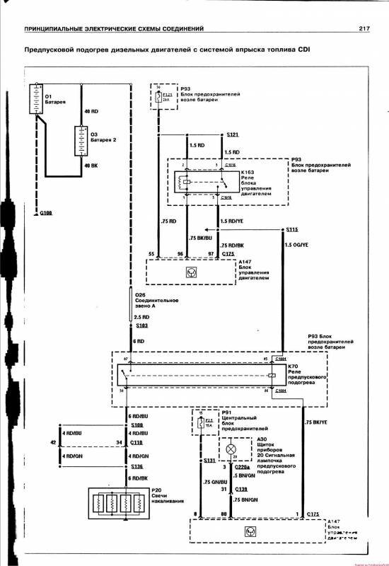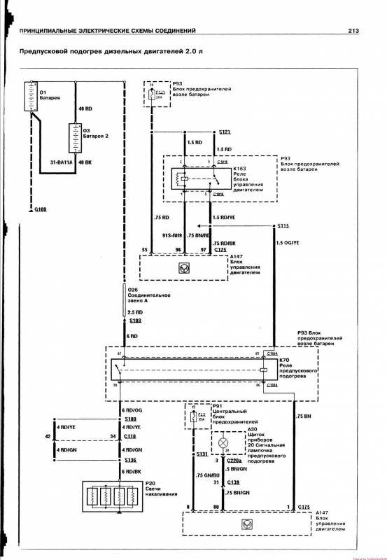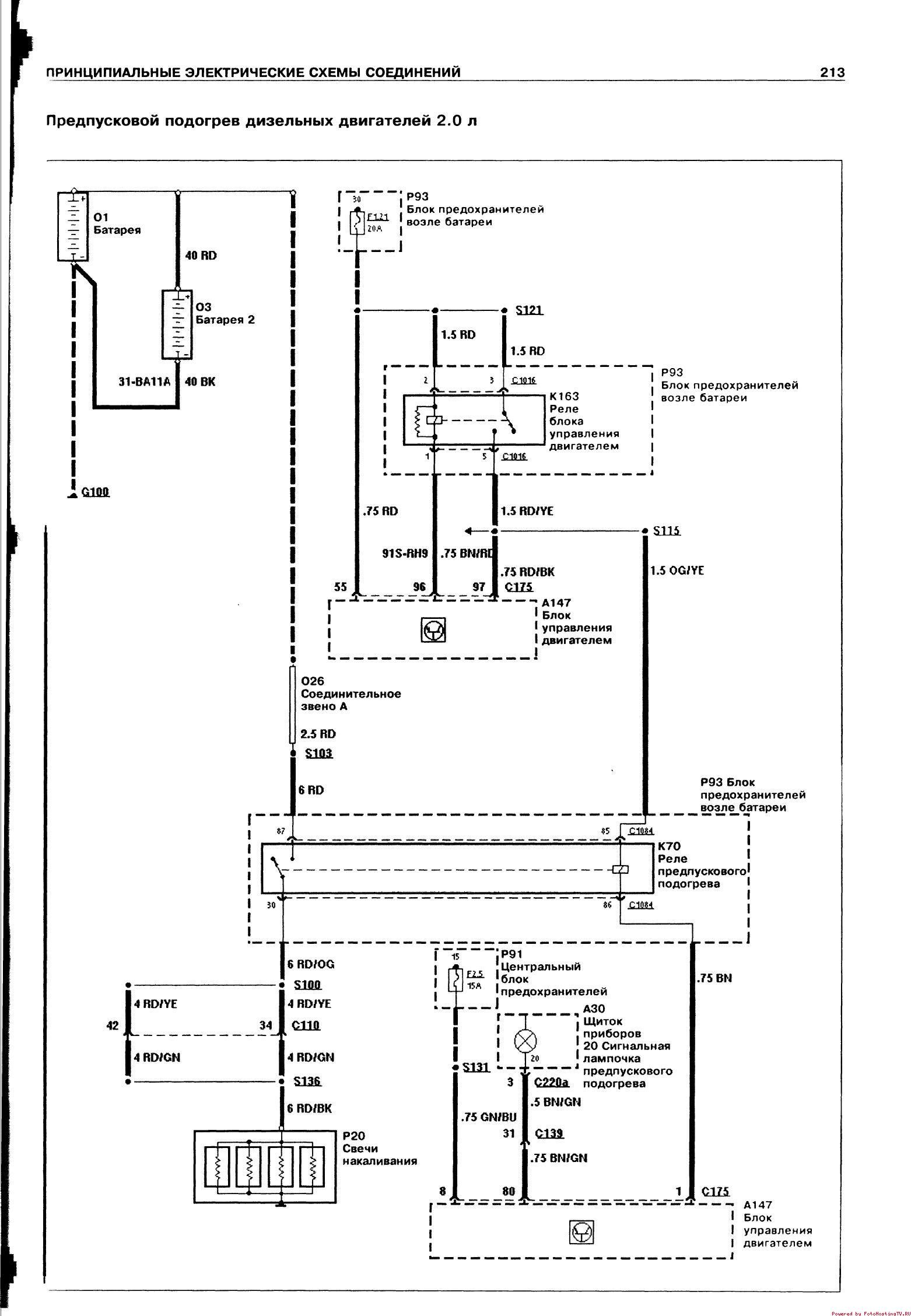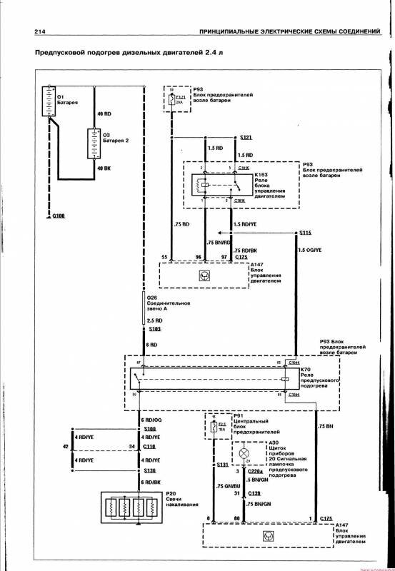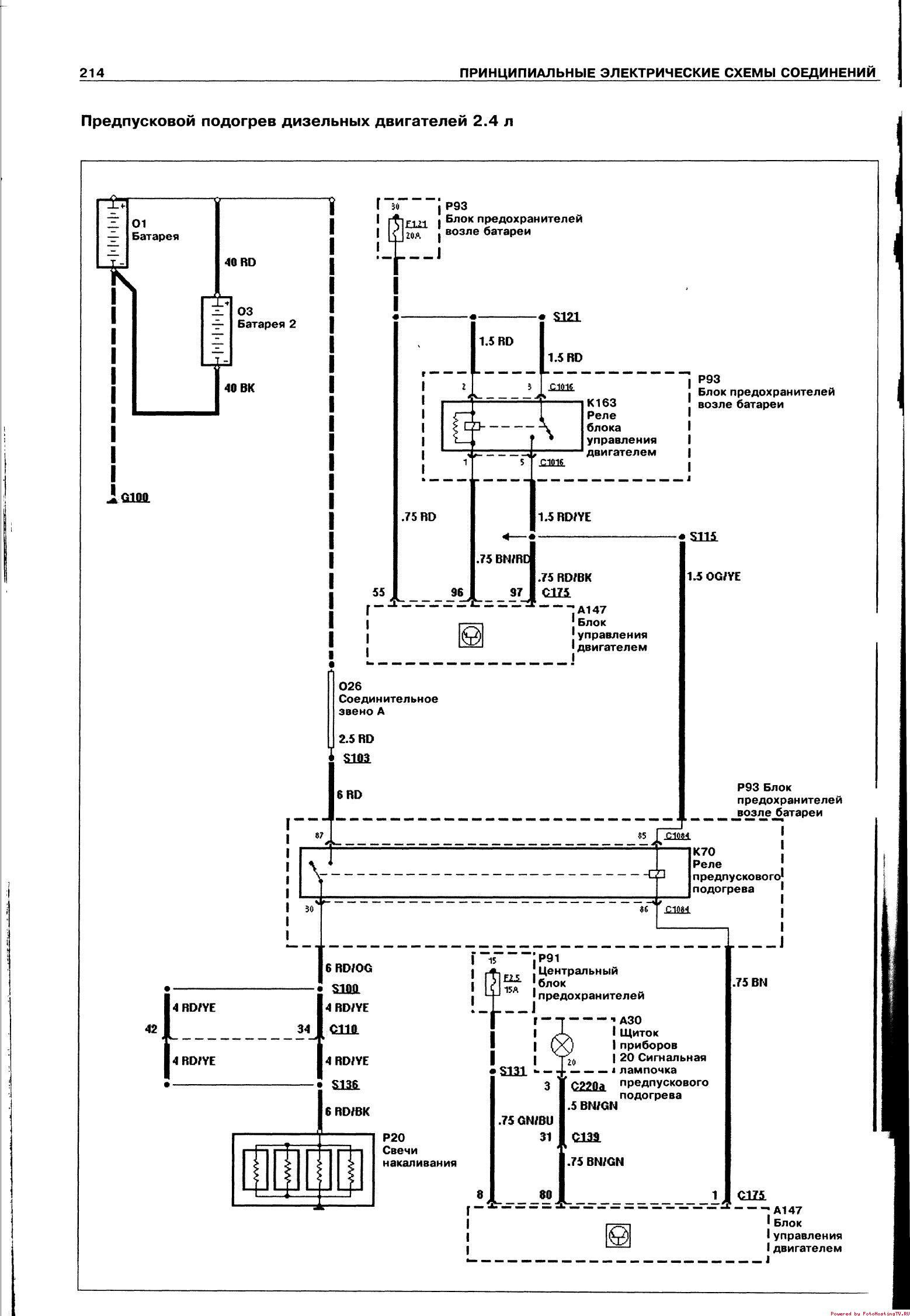 Схема системы пуска с системой предварительного прогрева впускного воздуха, используемой для нагрева топлива Ford Transit