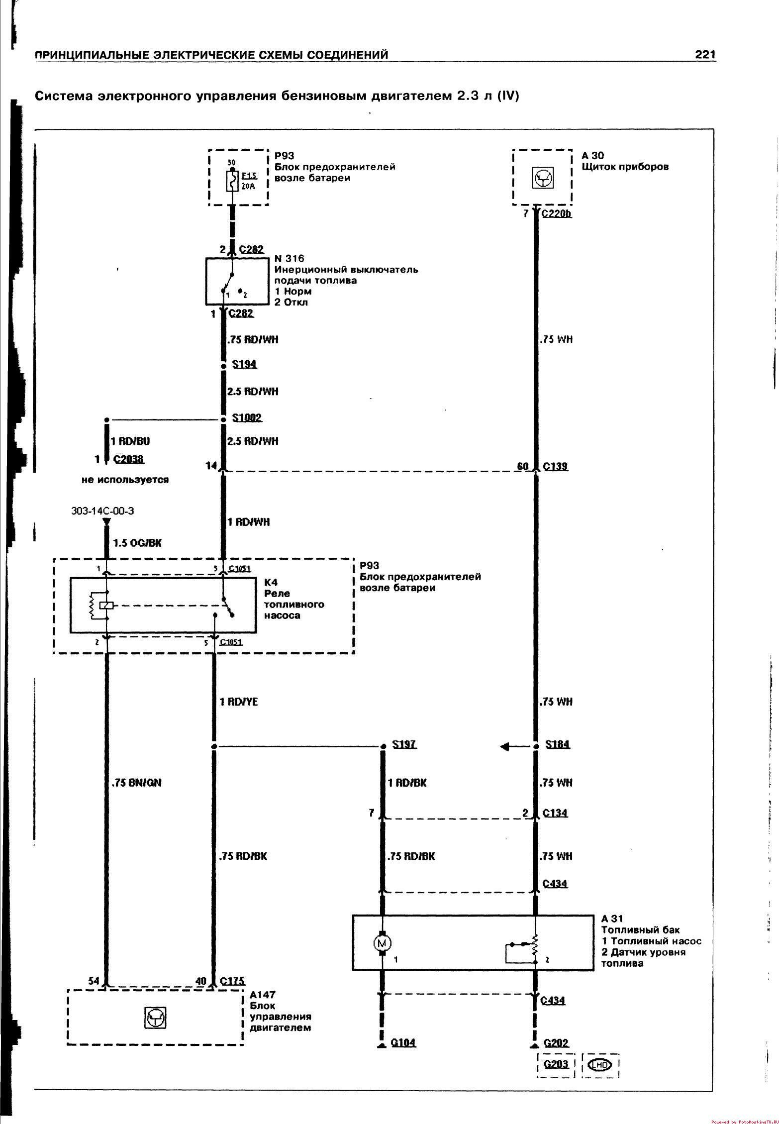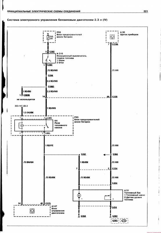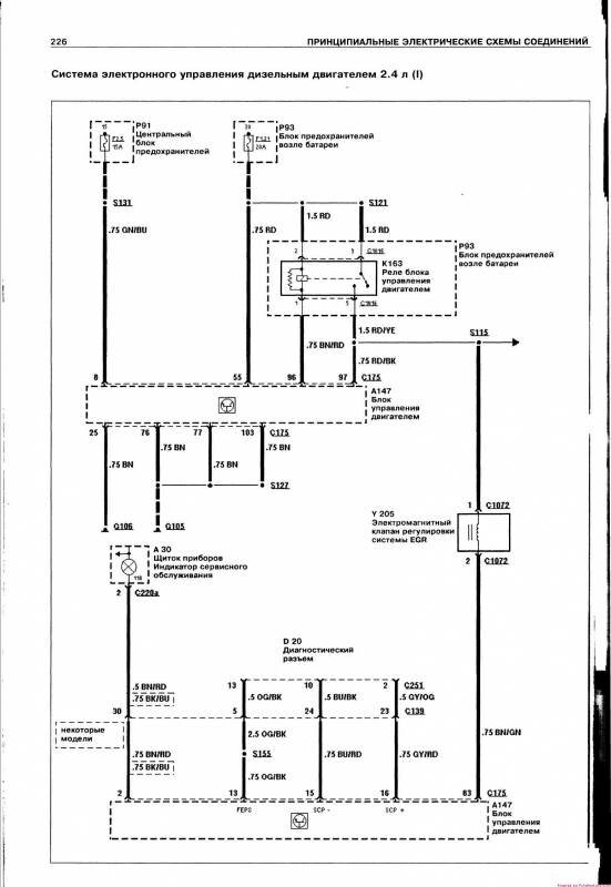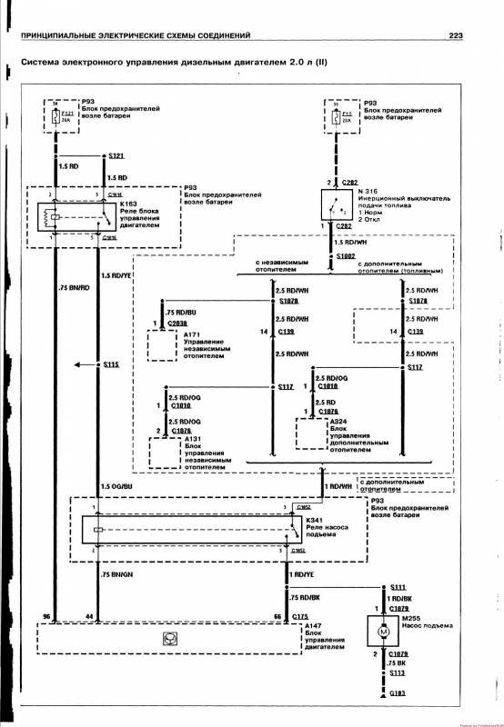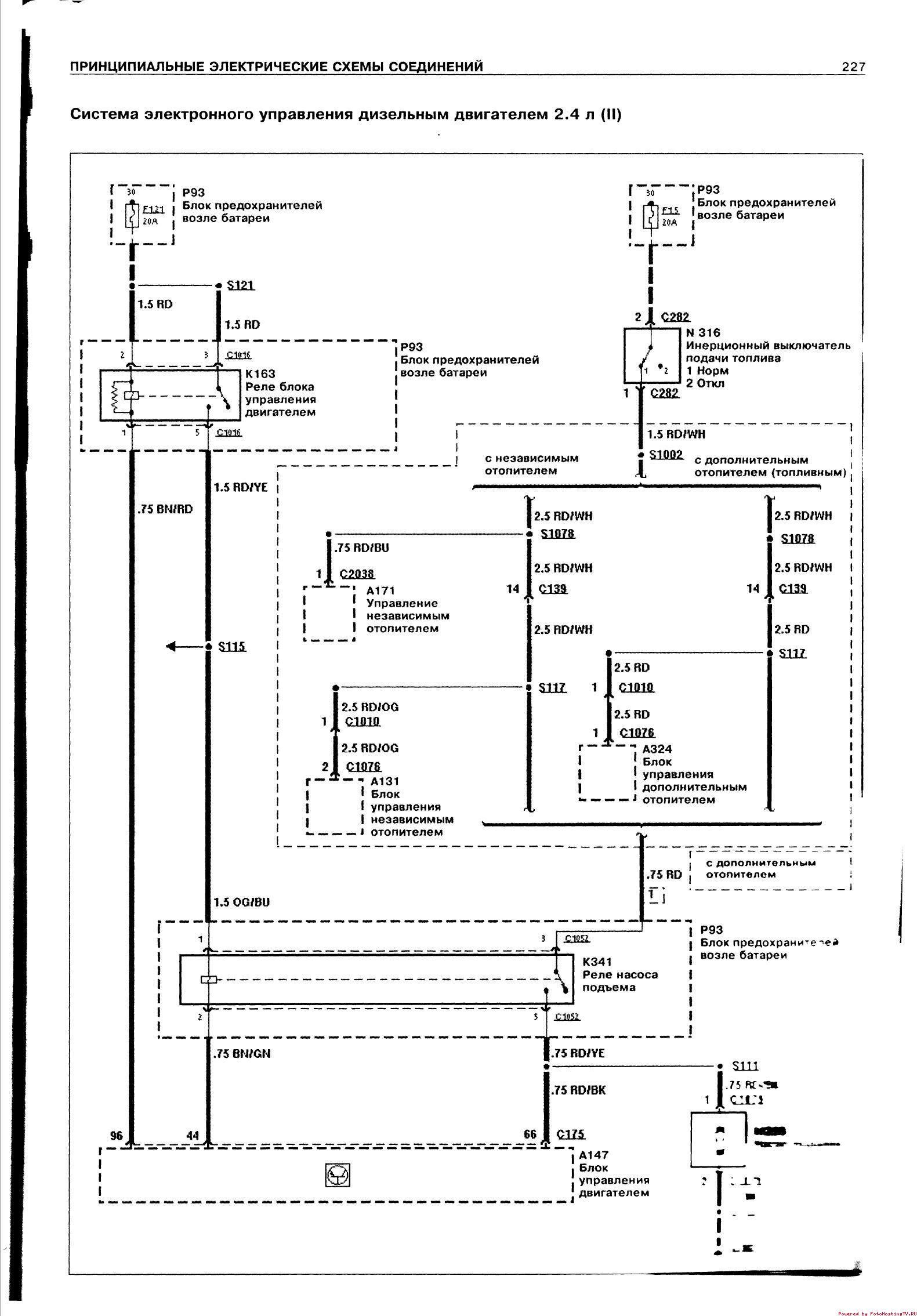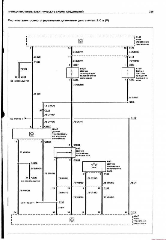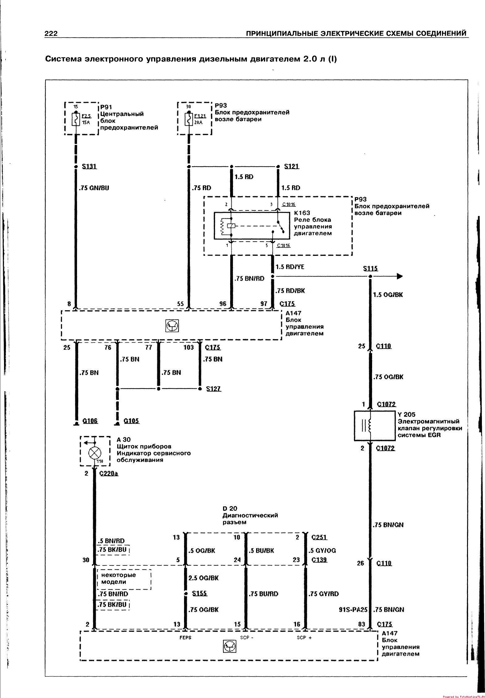 Схема системы пуска с системой предварительного прогрева впускного воздуха, используемой для нагрева топлива Ford Transit