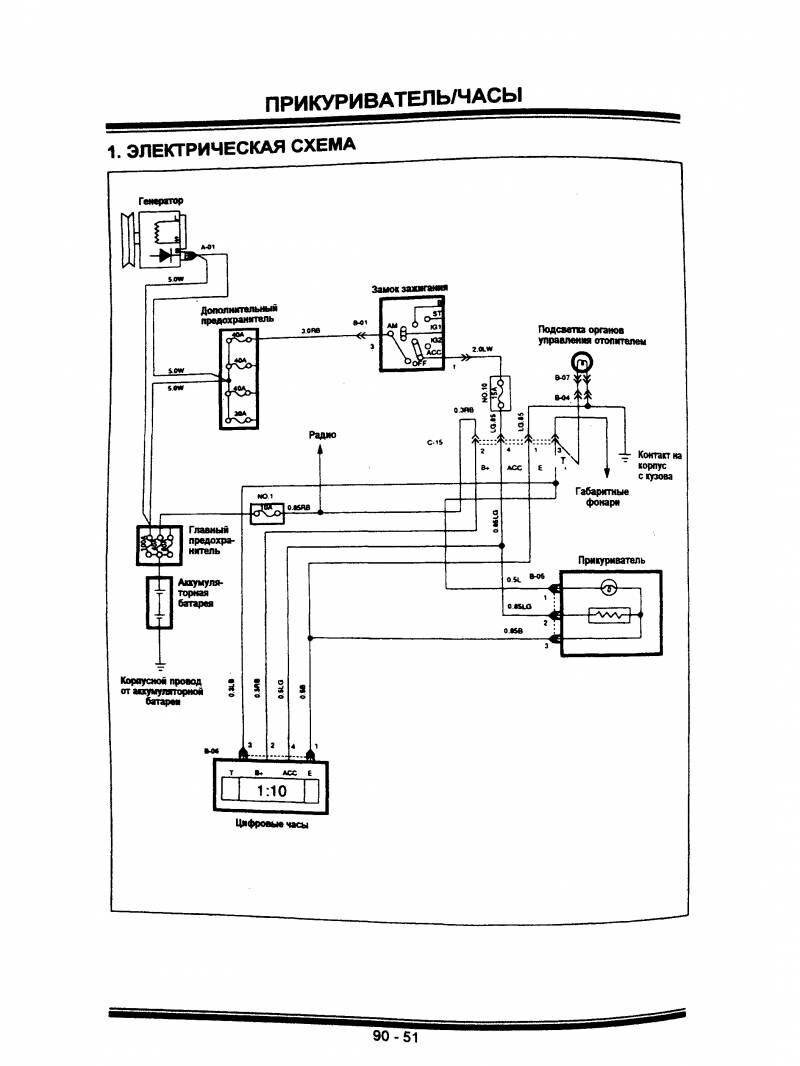 Вторая часть сборника электросхем автомобиля Hyundai Galloper. Все материалы предоставляются бесплатно и доступны для просмотра на сайте без регистрации. Увеличить изображение можно по клику. На схемах авто имеются все основные узлы, предохранители и их номиналы, реле, замок задней двери, стелоочистители и другие элементы электрических цепей для бензинового и дизельного двигателя Hyundai. Начало, с примерами расшифровки схем, можно посмотреть тут.