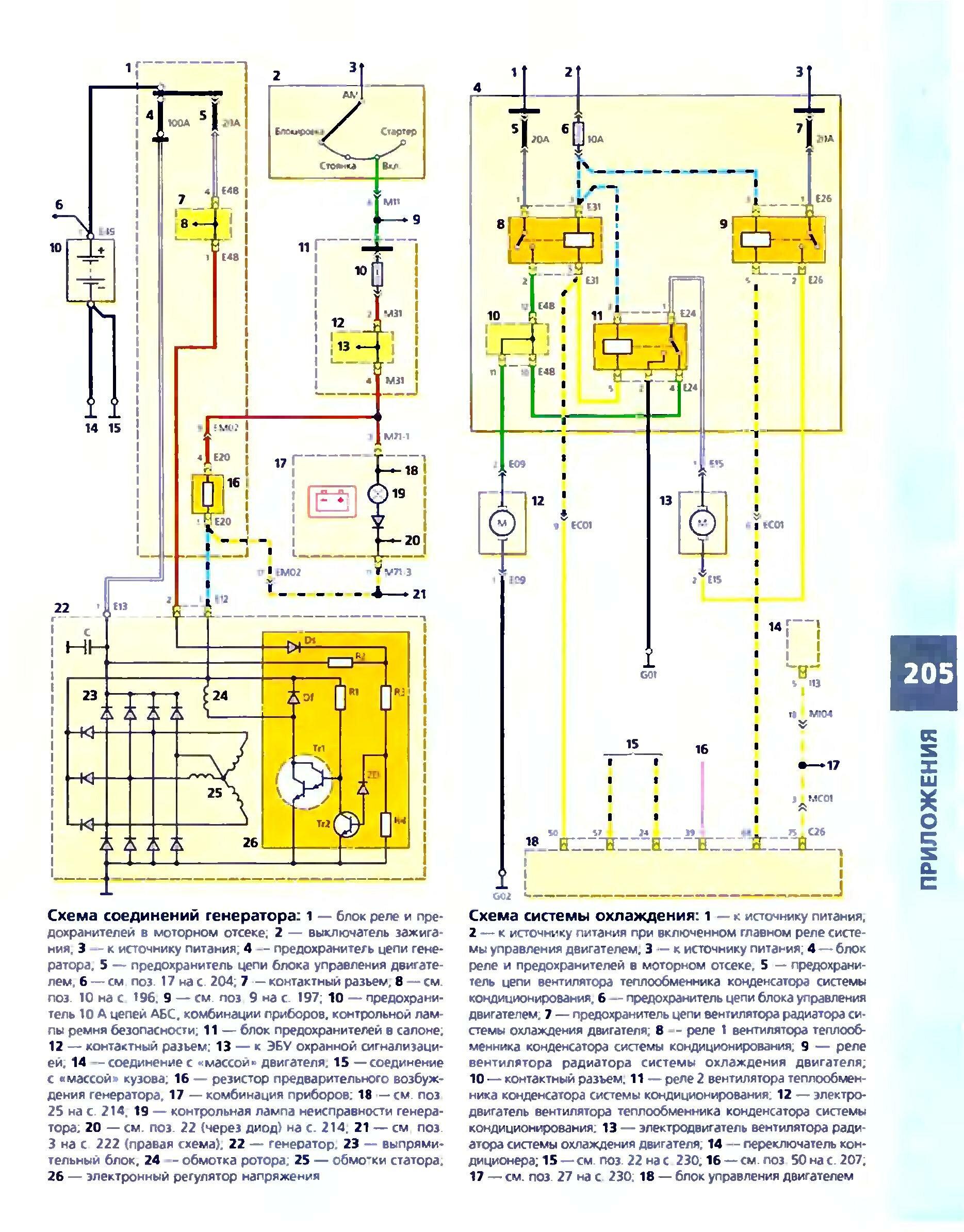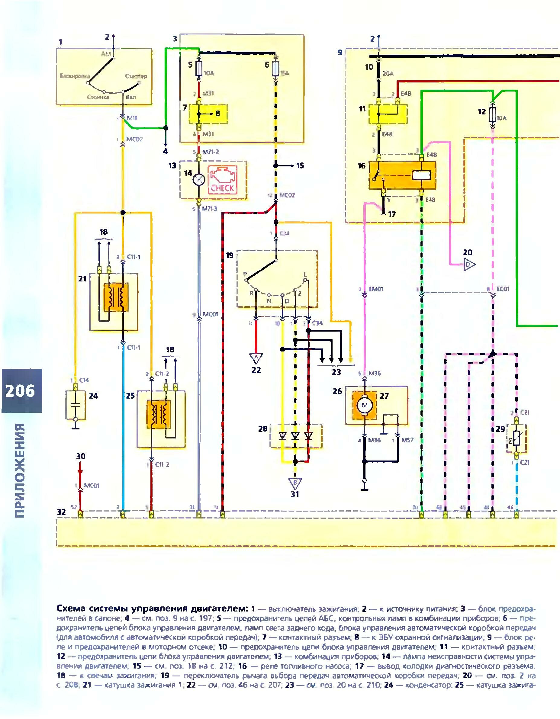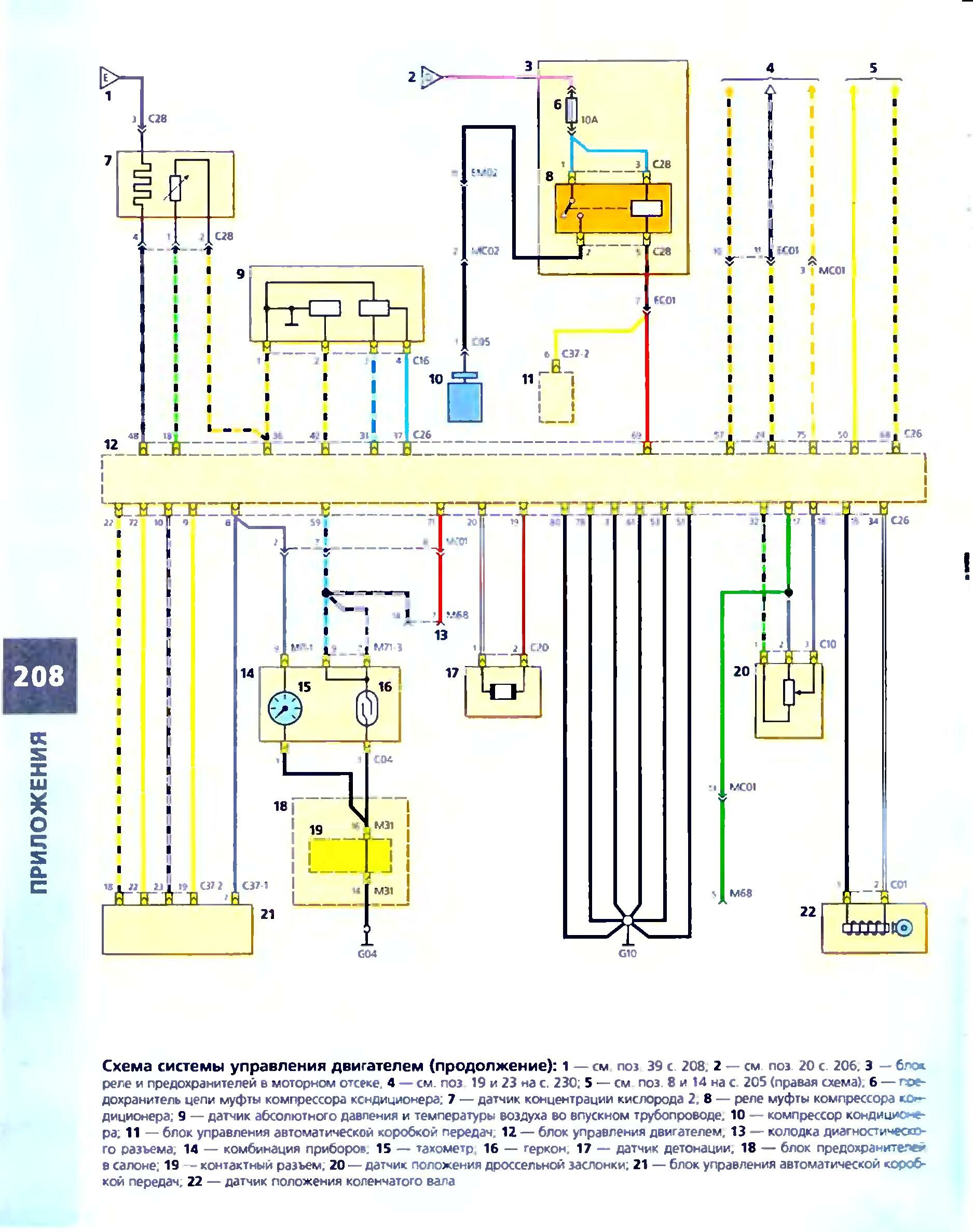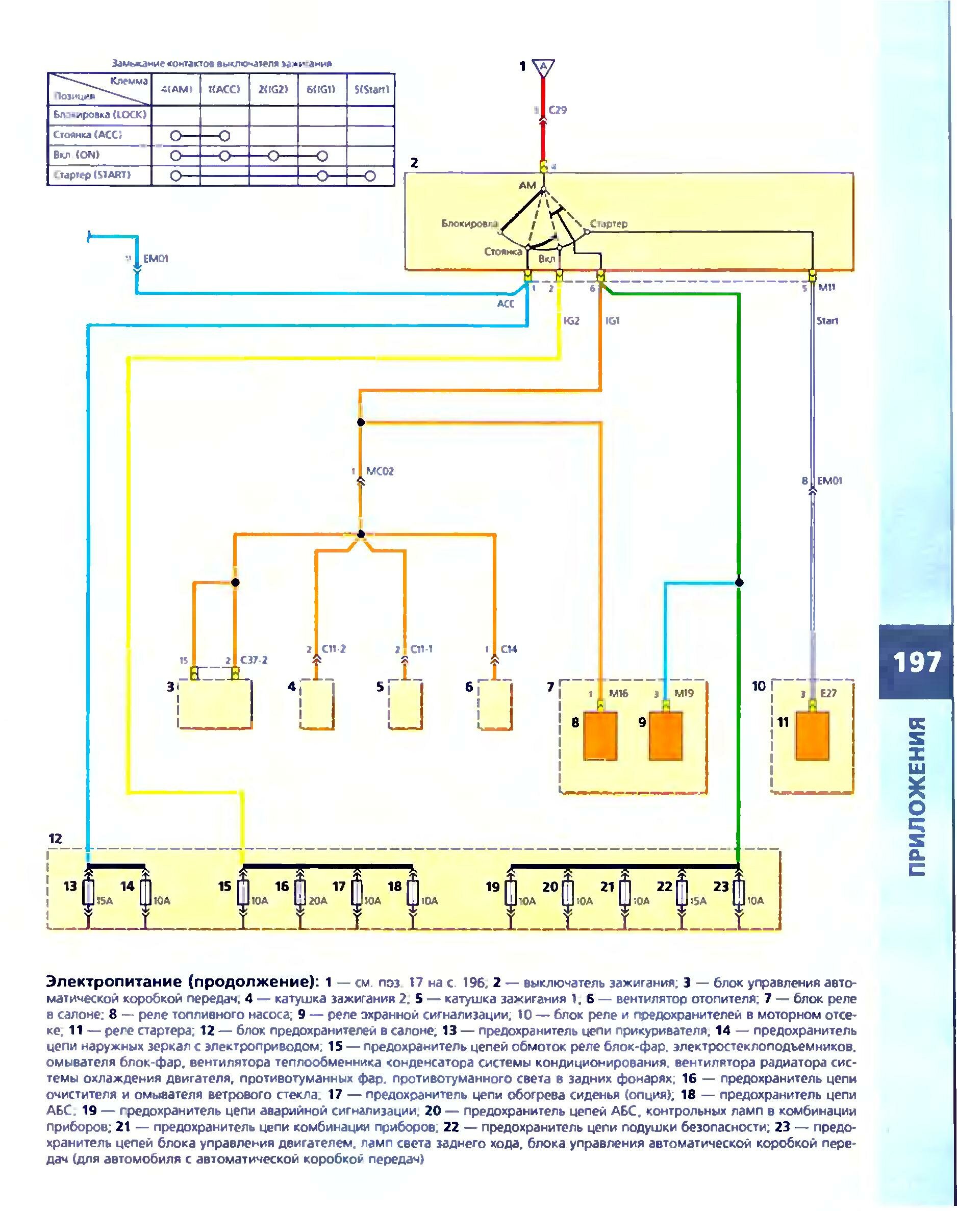 Бесплатный сборник цветных схем на русском языке электрооборудования автомобиля Hyundai Accent (1,5i) с 2000 года выпуска. Тут показан блок реле и предохранителей, а также некоторые другие модули. Продолжение каталога схем читайте далее. Предохранители служат для того, чтобы разрывать цепь, когда сила тока достигнет определенного значения, для того, чтобы защитить элементы и провода, которые могут быть повреждены слишком сильным током. Резкое увеличение силы тока обычно вызвано неисправностью в цепи, чаще всего коротким замыканием. Обозначения цепей, защищаемых предохранителями, указаны на крышке блока предохранителей.