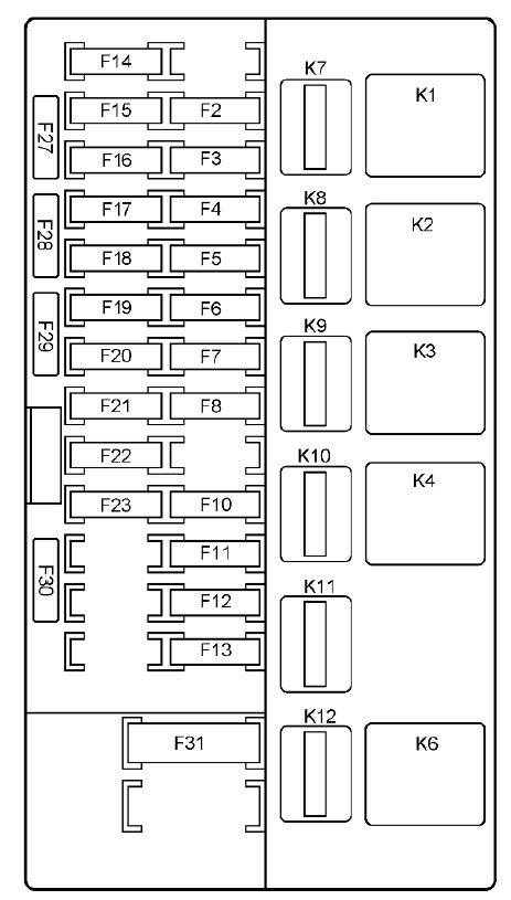 F3 (синий) 60 цепь питания электровентилятора системы охлаждения, звуковой сигнал, тревожный сигнал, замок зажигания, комбинация приборов, освещение салона, стоп-сигнал, прикуриватель