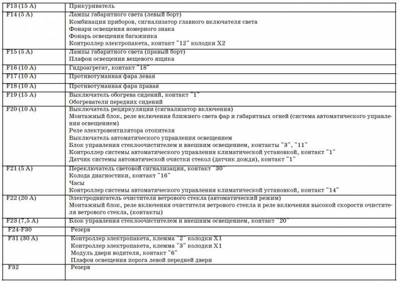 13 – предохранитель цепи питания бензонасоса (15 А)