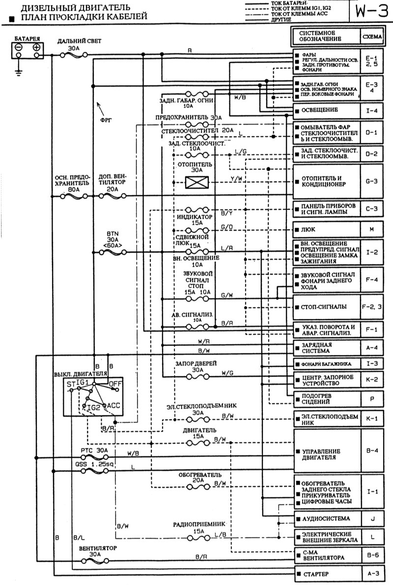 Схема дизельного двигателя Мазда 323 - прокладка кабелей