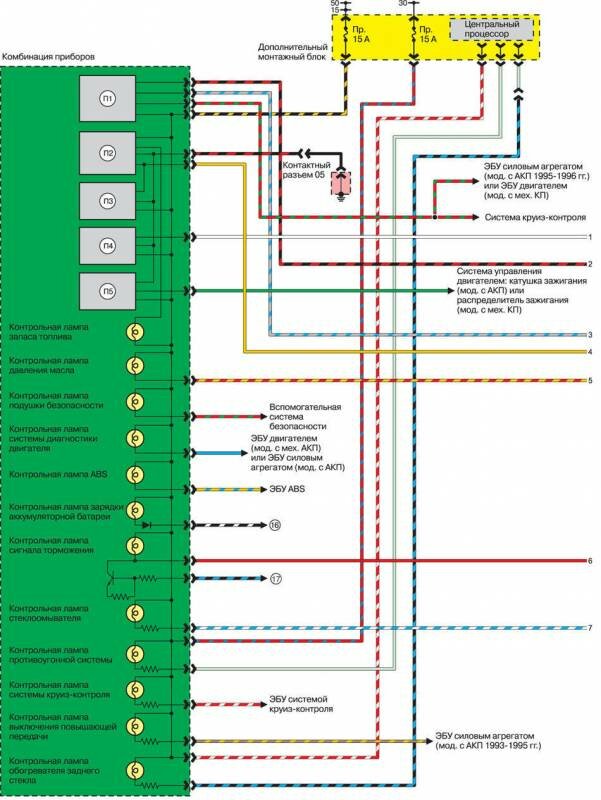 Датчики приборного щитка и сигнальные лампочки - модели 1993 и 1998 г.