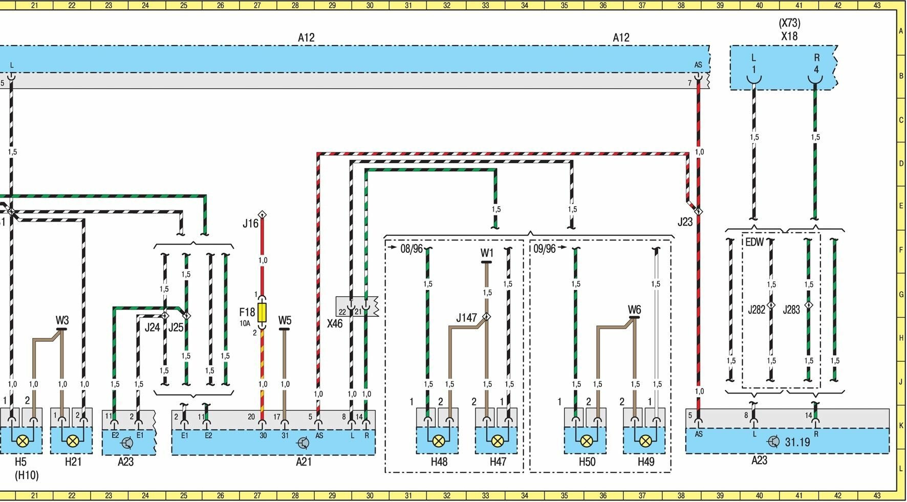 W3 Соединение с <массой> в левой фаре 22H