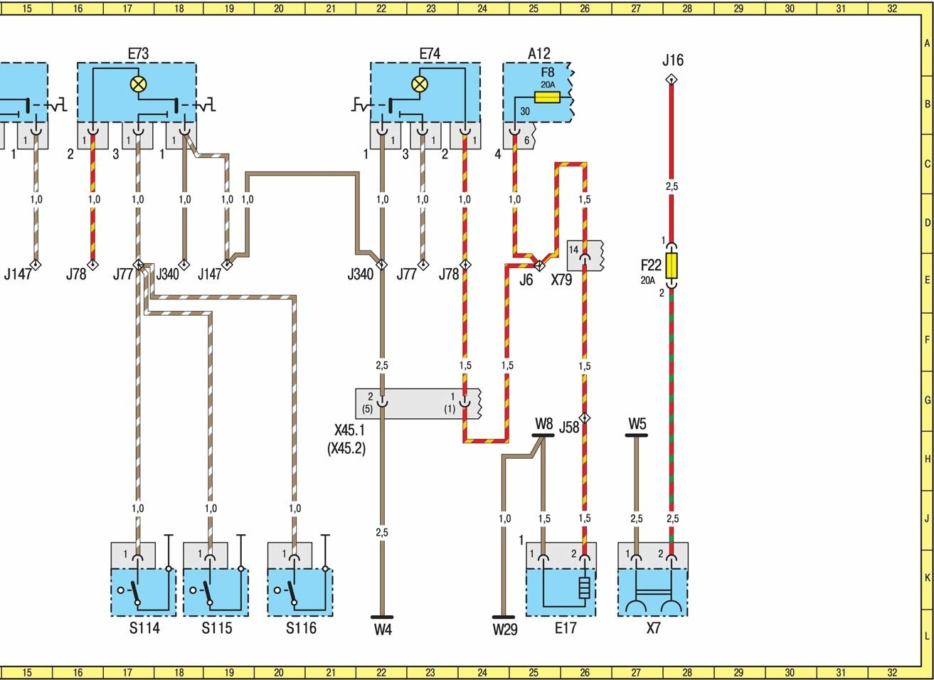 J22 Вывод <15>, защищенный предохранителем 8E
