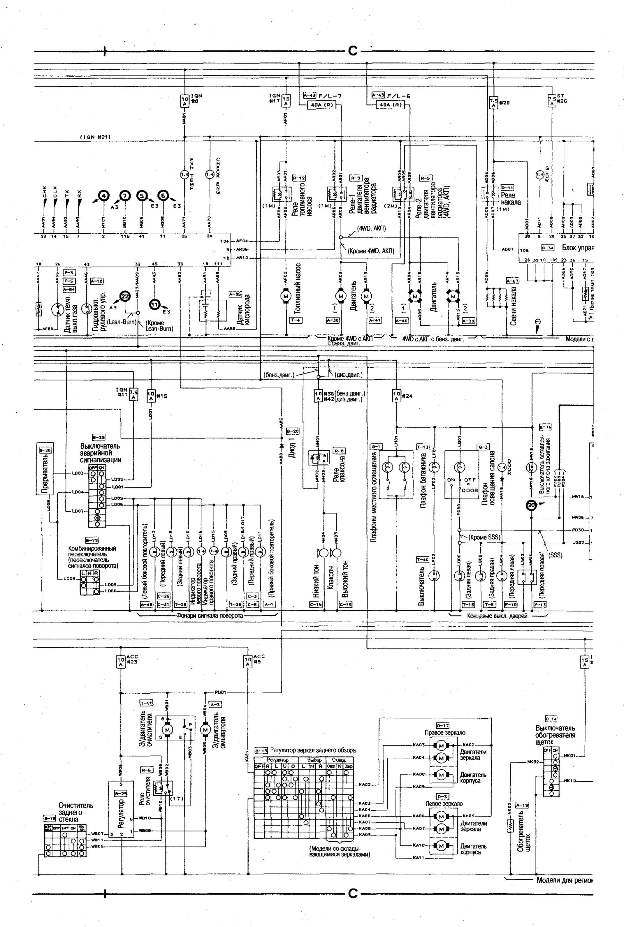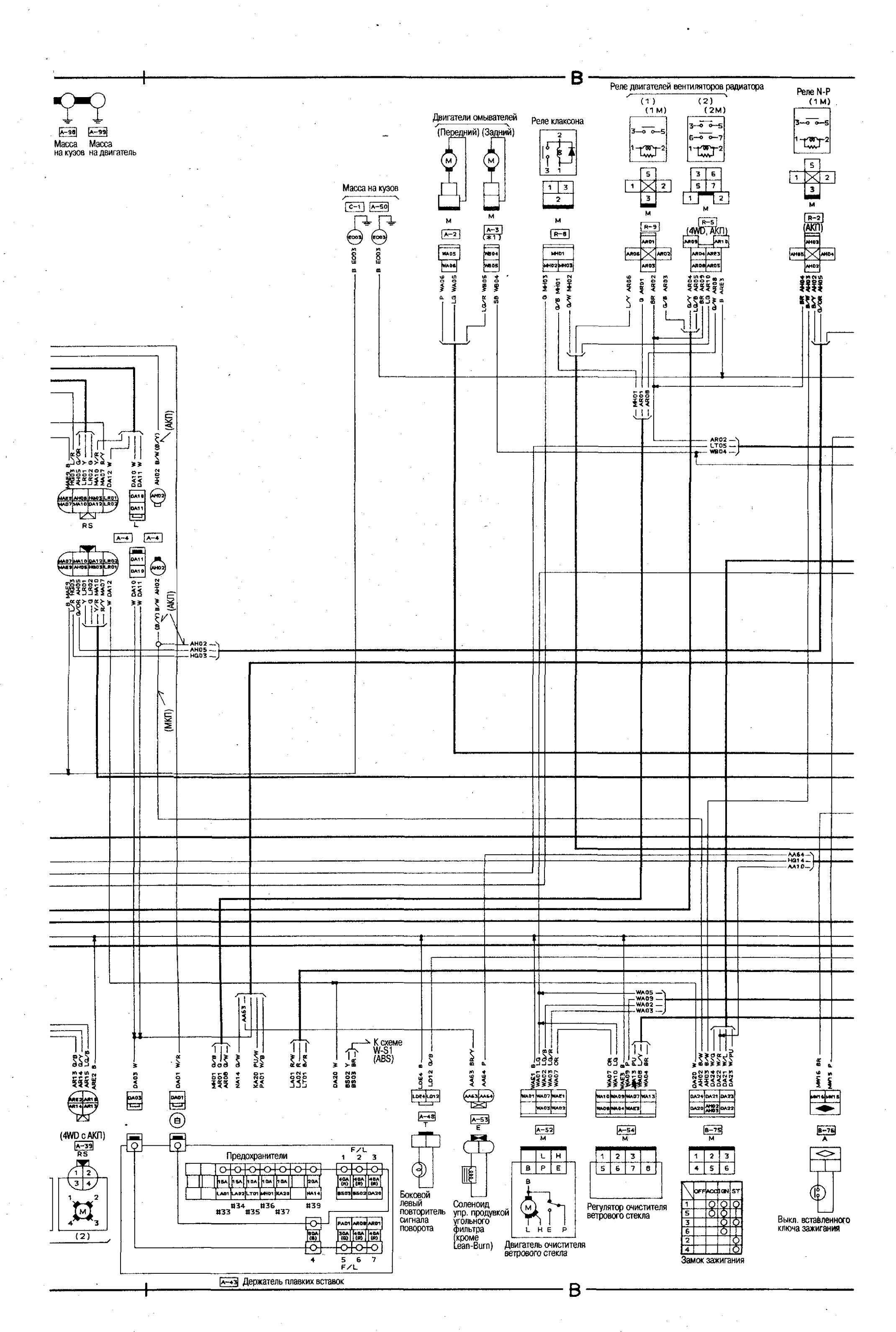 Электросхема соединений главной проводки Nissan Bluebird