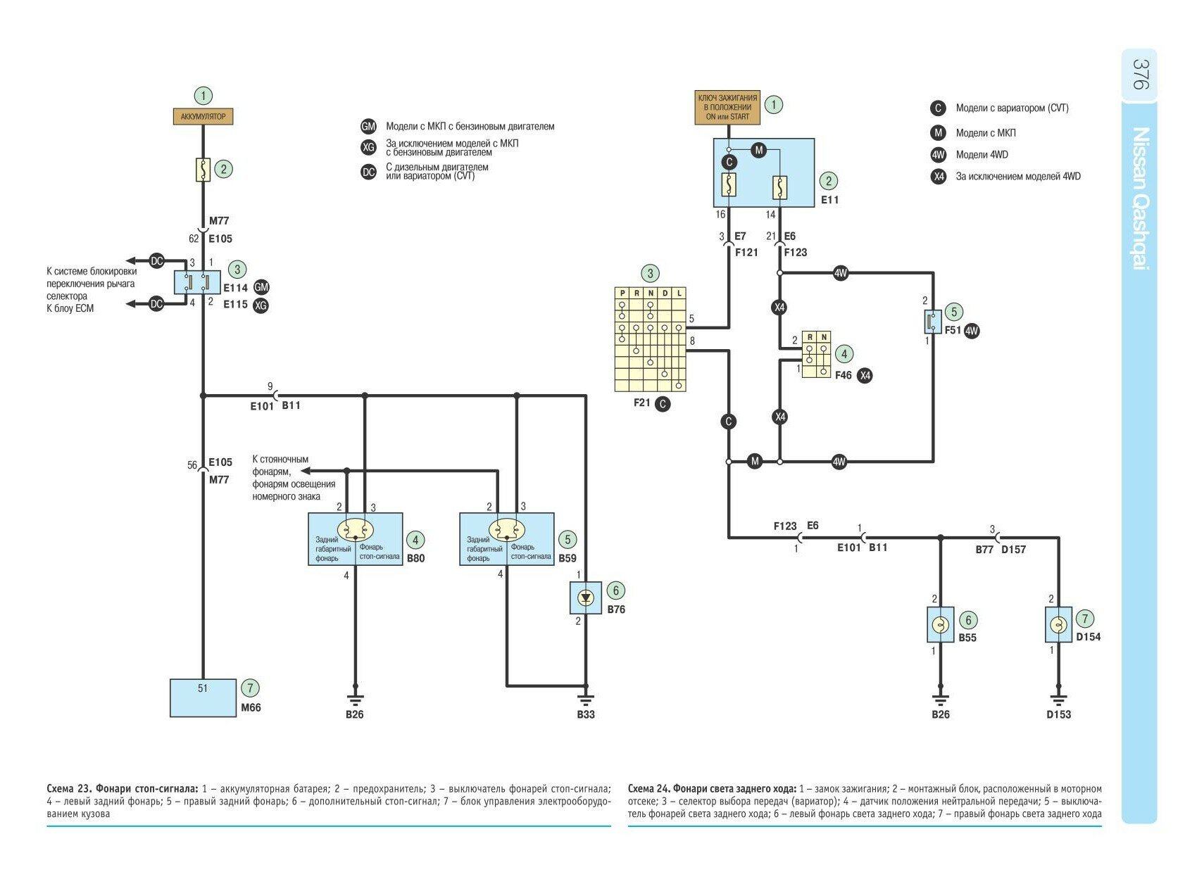 Цветные электрические схемы автомобиля Ниссан Кашкай с 2007г и Ниссан Кашкай +2 с 2008г полностью на русском языке, вы можете бесплатно посмотреть в данном материале. На электросхемах имеются модули системы тормозов, системы управления двигателем, подключение фар, ламп внутреннего освещения и т.д. Информация взята из открытых справочников и бесплатно предоставляется для работников СТО, а также автоэлектриков-самодельщиков. Внизу страницы имеются и фотографии блоков реле и предохранителей, с указанием функций каждого предохранителя. Это вторая часть. Остальные электросхемы для этого автомобиля смотрите тут.