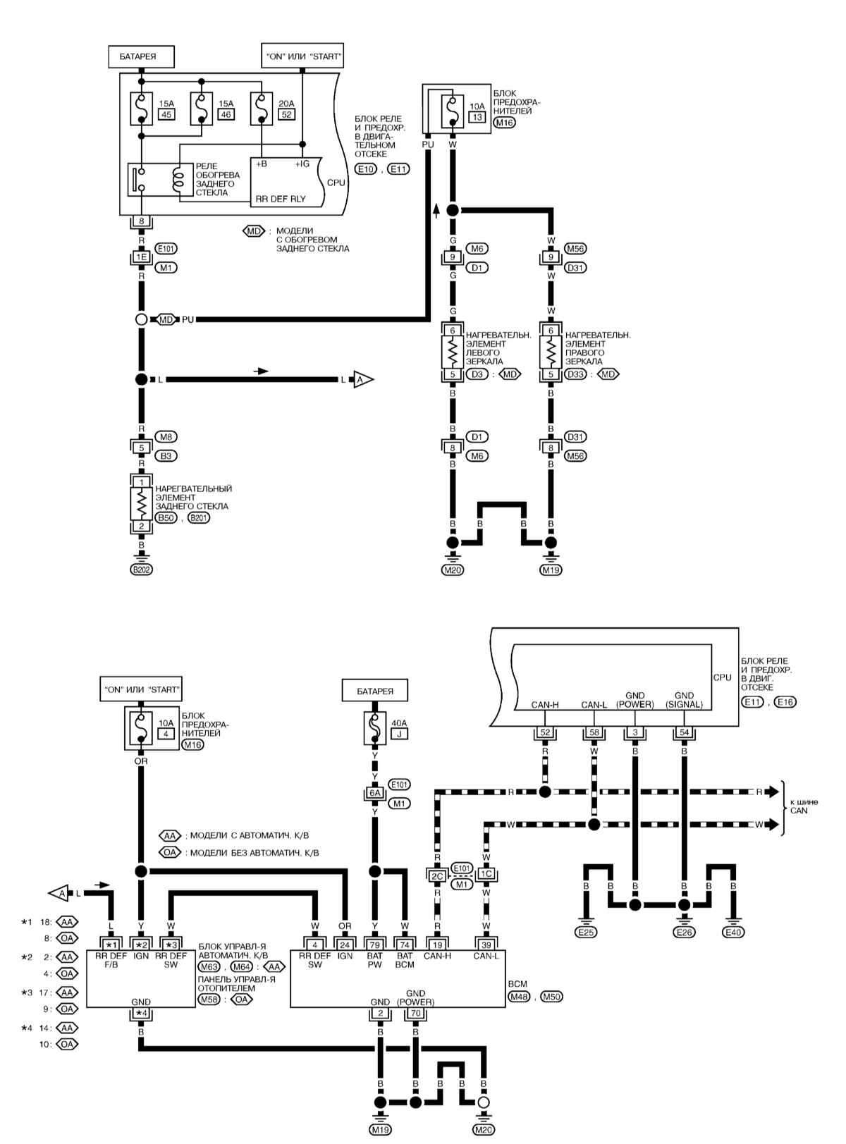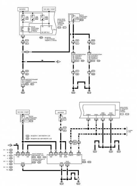 Электросхема обогрева заднего стекла и наружных зеркал