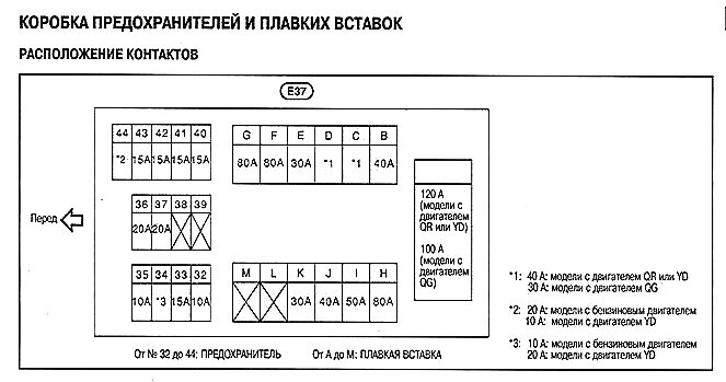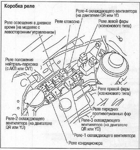 Расположение и функции предохранителей и реле Nissan Primera P12
