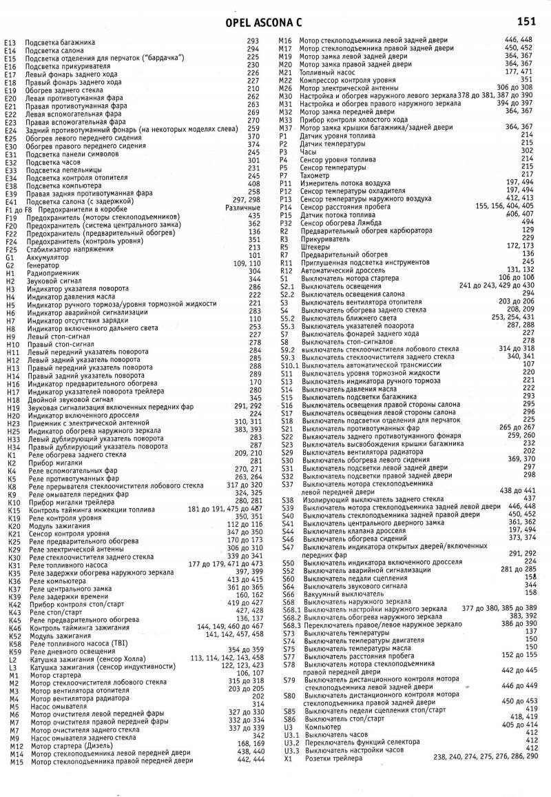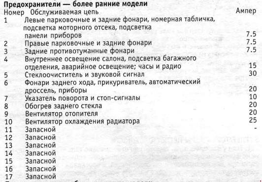 Перечень и назначение предохранителей Opel Ascona 1981-1988
