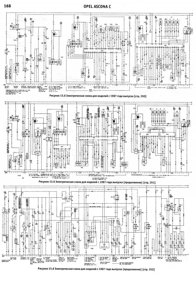 Электросхема Опель для моделей Аскона 1984г.