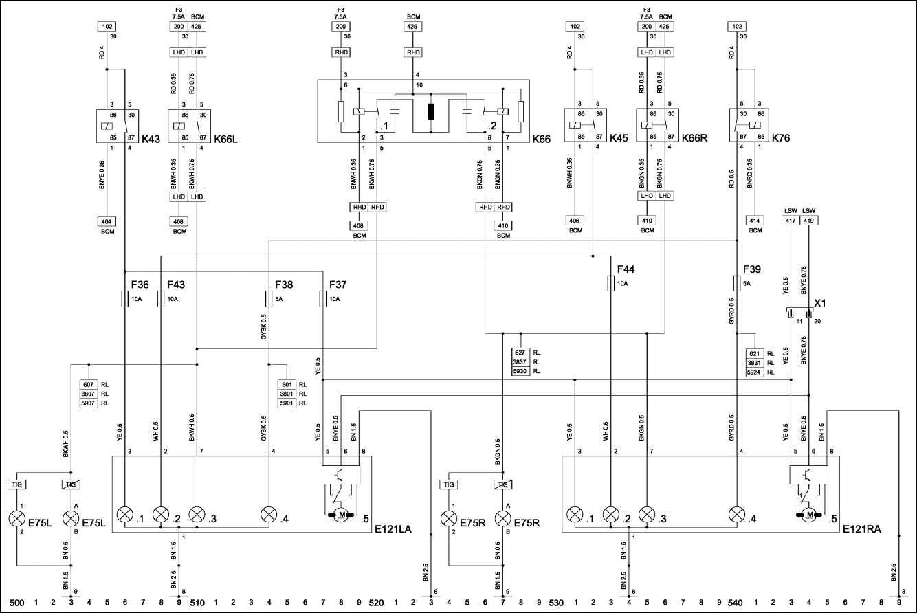KZL – лампы освещения номерного знака.