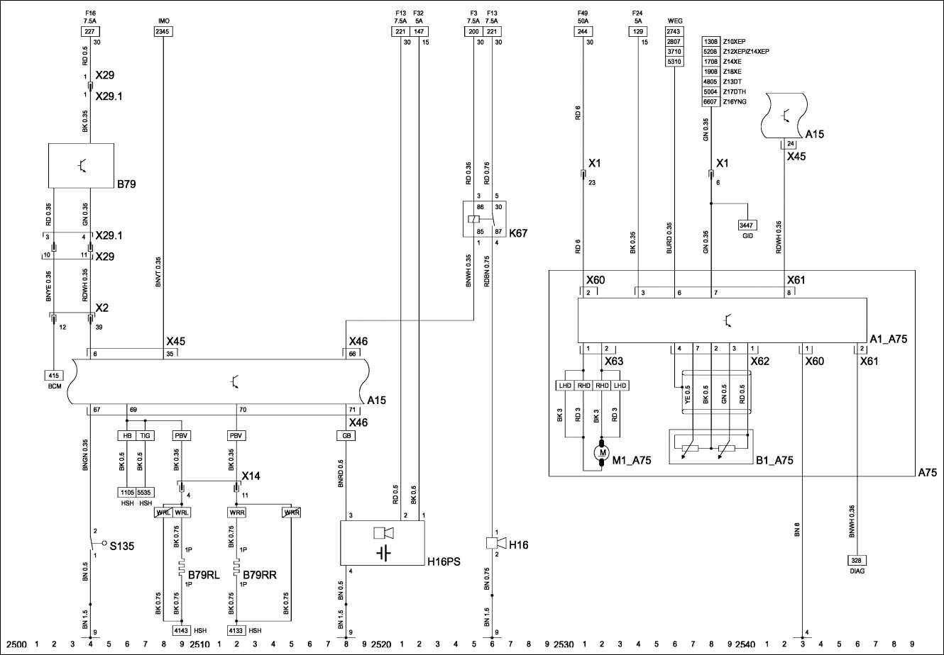 K67 – реле – звуковой сигнал, система противоугонной сигнализации.