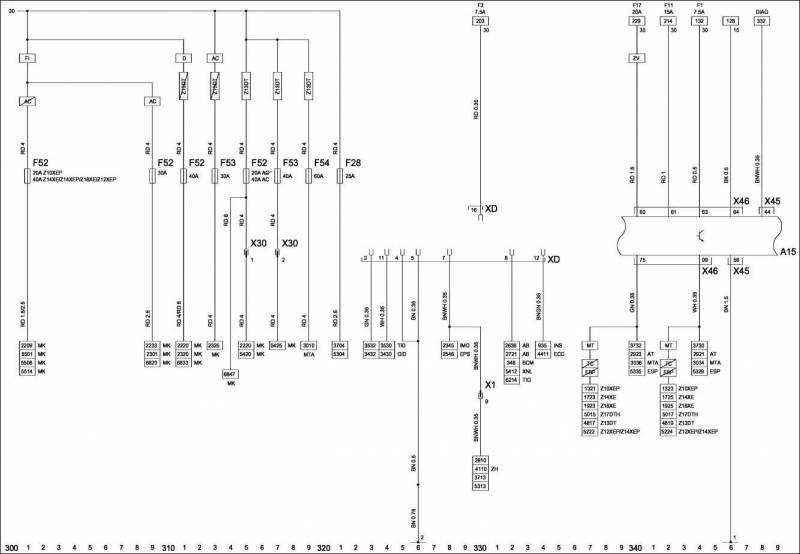 Продолжение сборника электросхем автомобиля Opel Corsa C. Здесь показаны схемы таких узлов: модуль управления кузовным оборудованием, рулевое управление с электроусилителем, система противоугонной сигнализации, антиблокировочная тормозная система и регулирование тягового усилия, центральное управление дверными замками и другие. Первую часть схем Opel Corsa смотрите здесь.