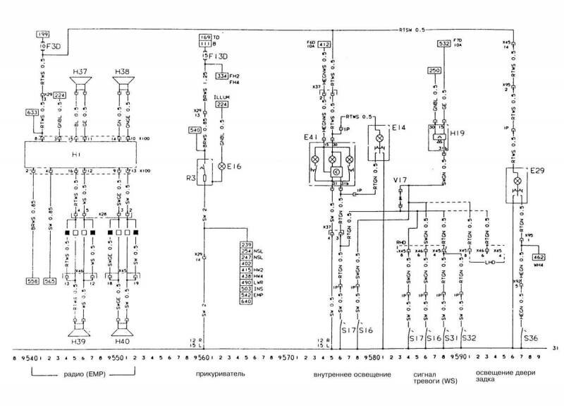 Электроссхемы автомобиля Опель фронтера. Ниже смотрите расшифровки и обозначения элементов на схемах. Номер, заключенный в рамку, например, 406, указывает на цепь, имеющую продолжение с тем же номером. Наименование элементов приведены в соответствии с DIN 40719, обозначение линий в соответствии с DIN 47002. Некоторое наложение участков схем Опель фронтера облегчает чтение. Начало схем электрооборудования Opel Frontera находится здесь.