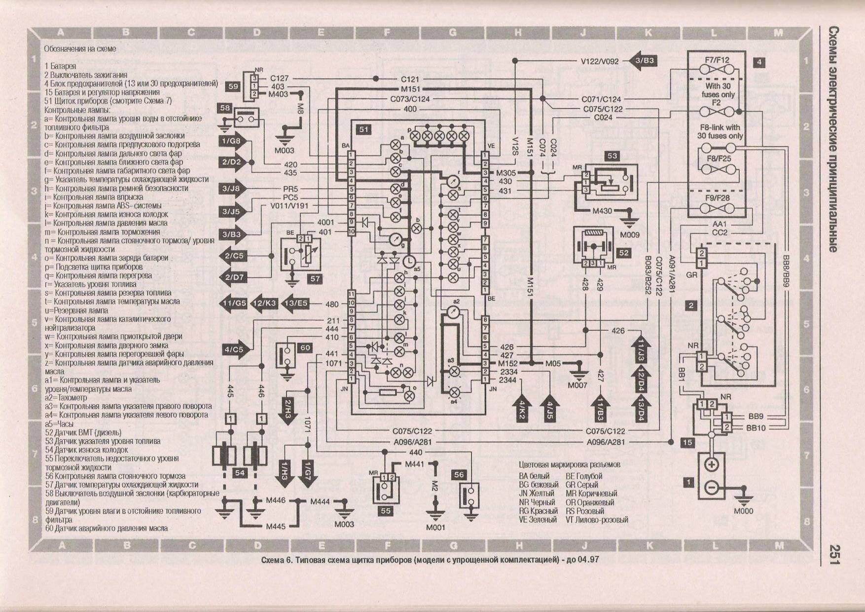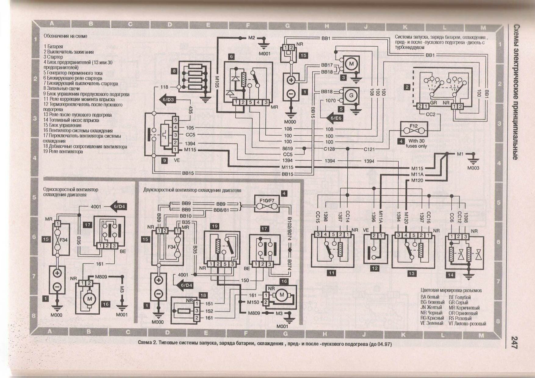 Системы запуска двигателя и заряда батареи Peugeot 306