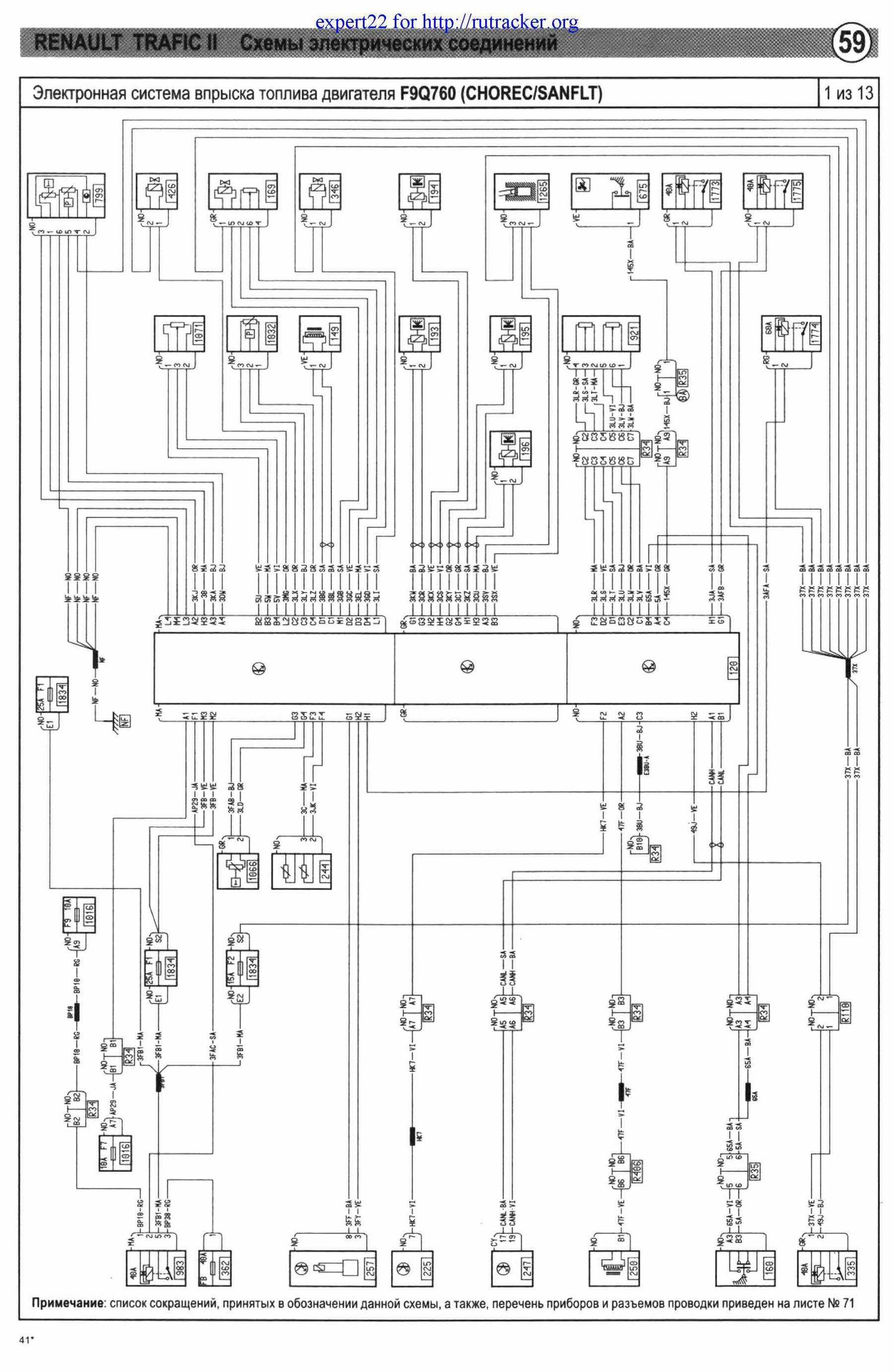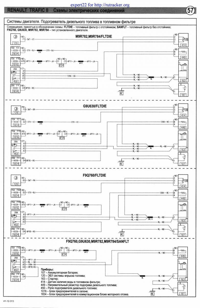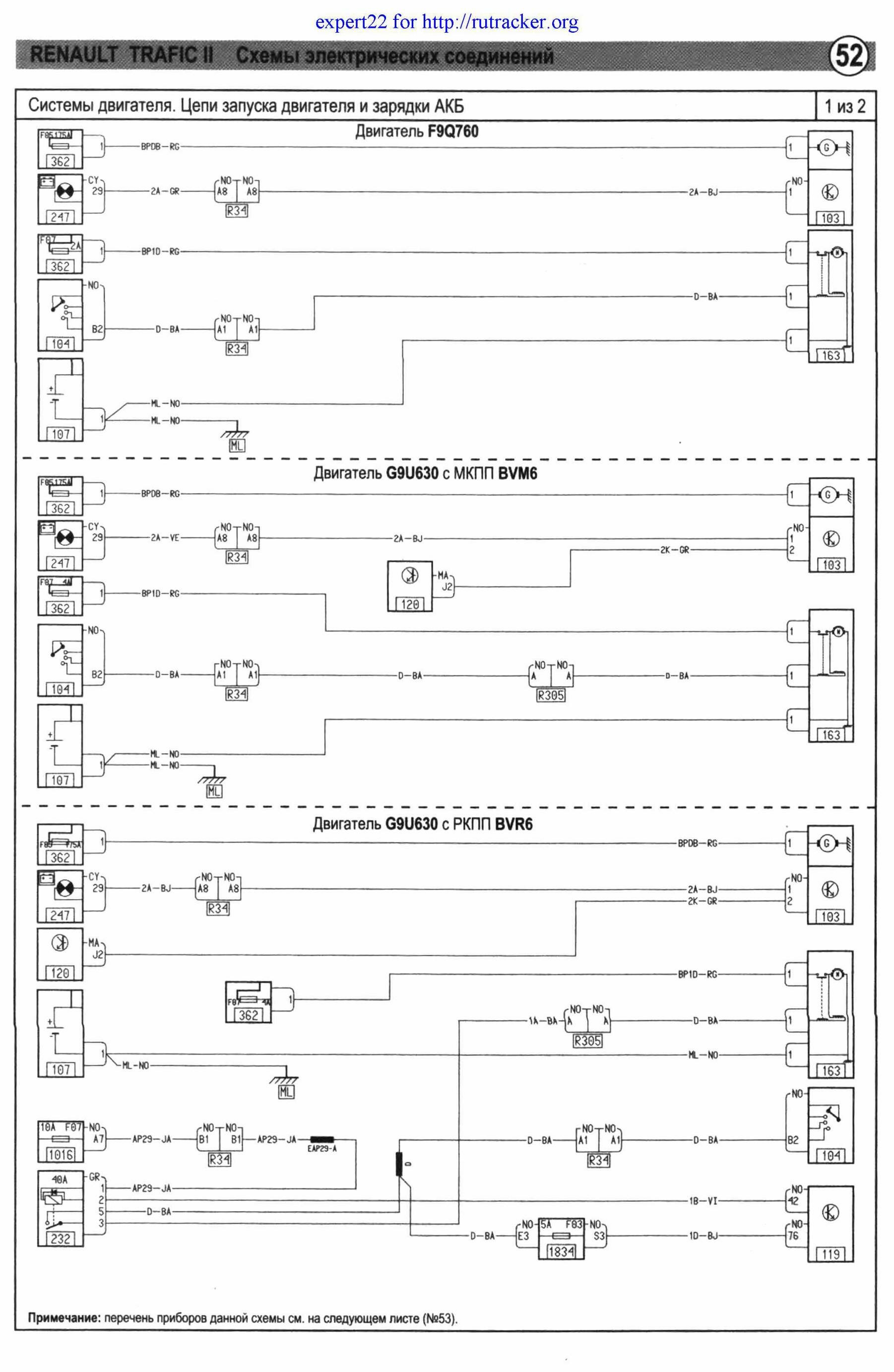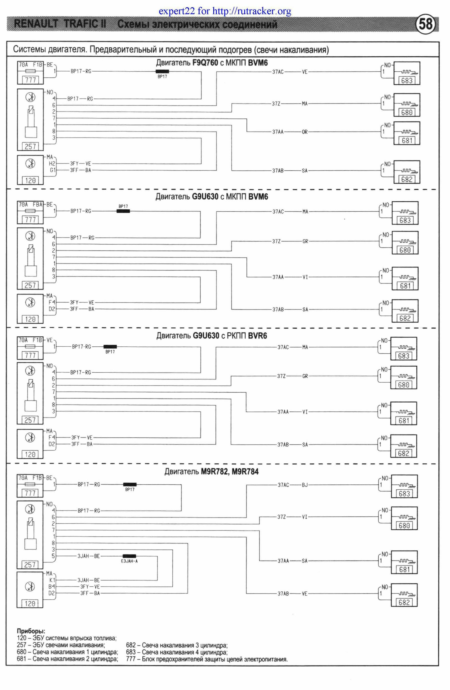 Бесплатные схемы электрооборудования двигателя автомобиля Renault Trafic. Все схемы на русском языке и в хорошем качестве. Чтоб развернуть картинку на весь экран - кликните на неё. Приведены модули запуска двигателя, впрыска топлива, охлаждения, электроснабжения двигателя. Схемы защищены от копирования и просматривать их можно только на сайте. Продолжение сборника, с описание остальных схем Renault Trafic, смотрите тут.