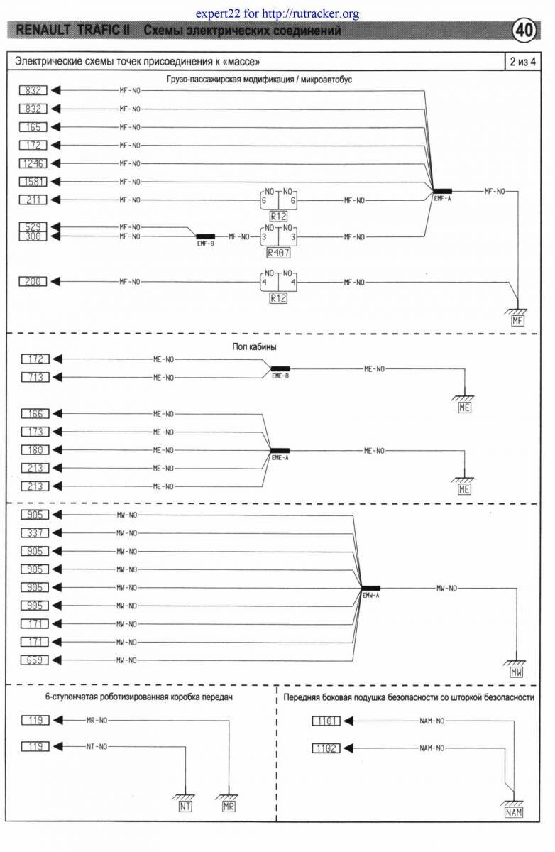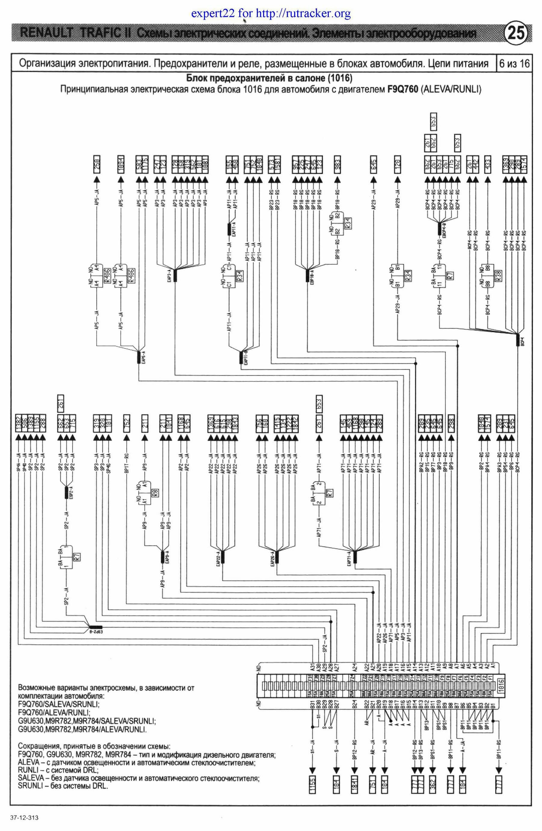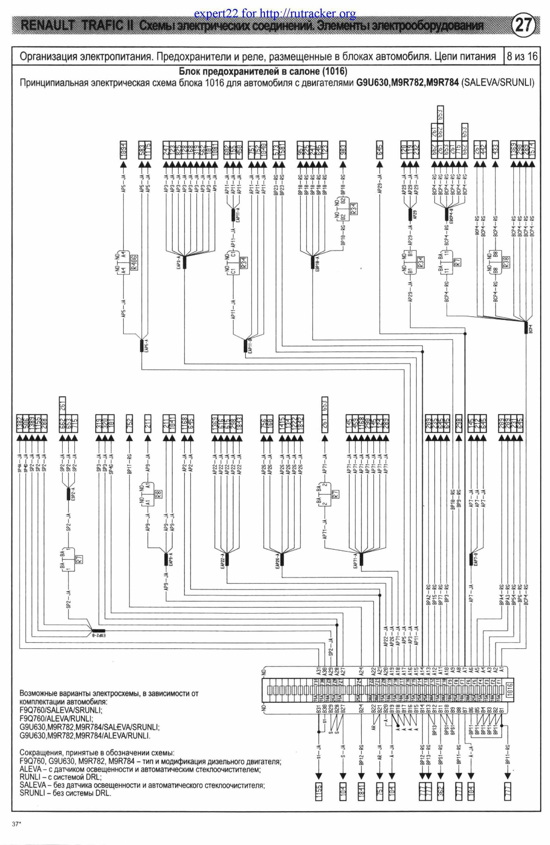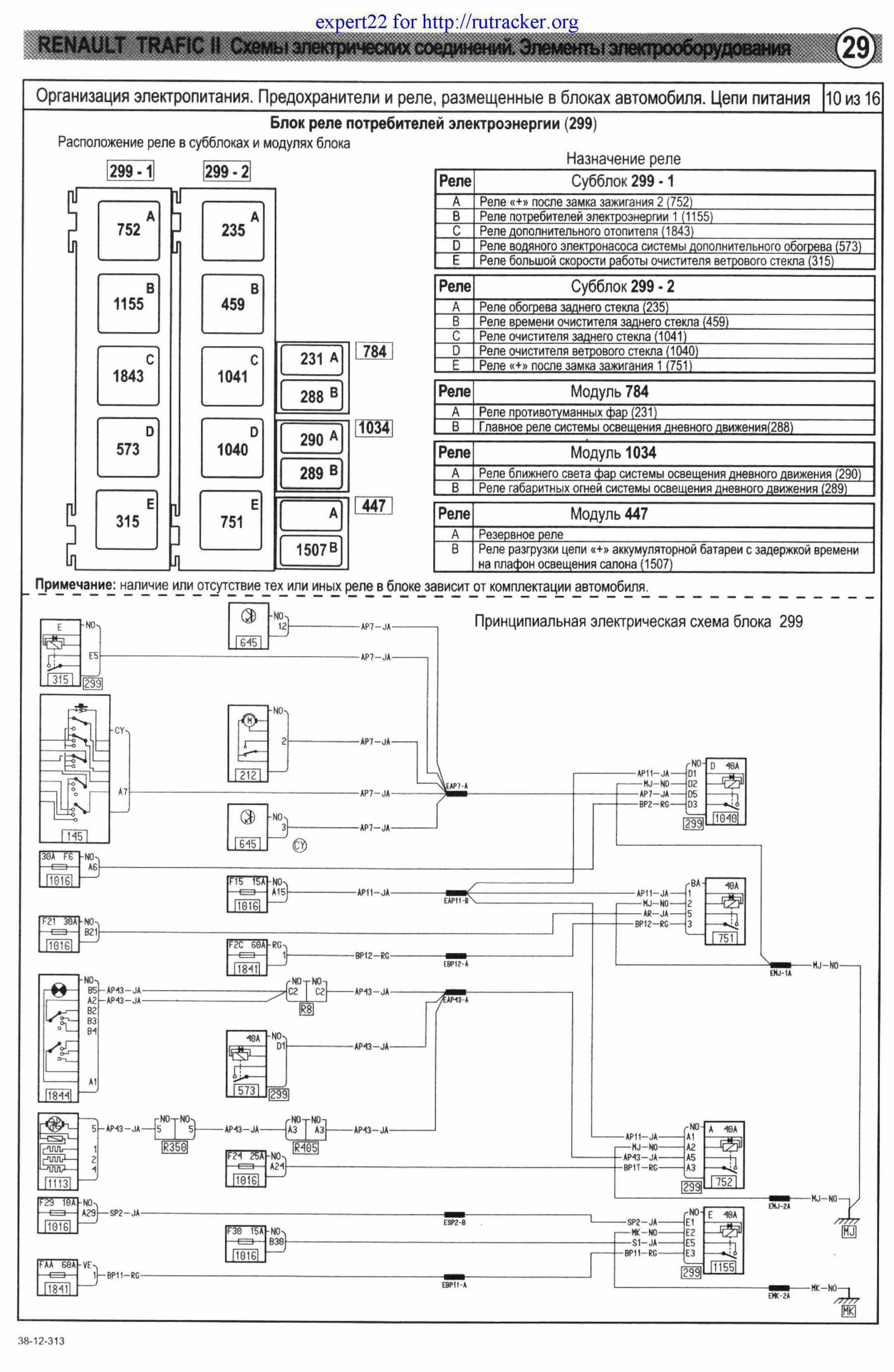 Принципиальные схемы электрооборудования автомобиля Renault Trafic - предохранители и реле с их обозначениями и номиналами. Все схемы на русском языке и в хорошем качестве. Чтоб развернуть картинку на весь экран - кликните на неё. Приведены назначения и местоположениях всех предохранителей, показаны защищаемые цепи. Указаны их условные обозначения на корпусе. Схемы защищены от копирования и просматривать их можно только на сайте. Продолжение сборника, с описание остальных схем Renault Trafic.