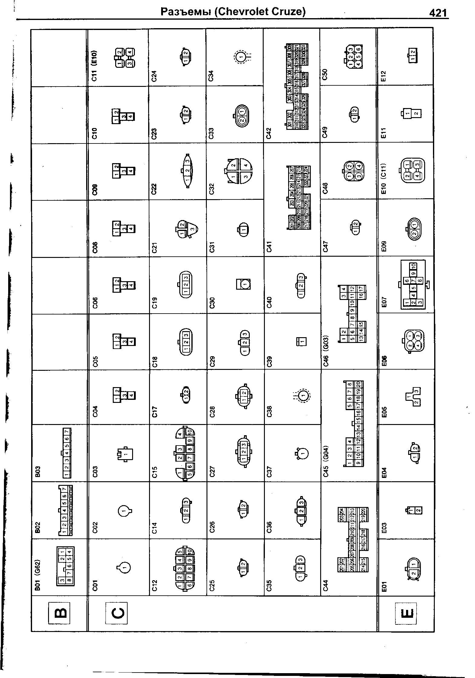 Схемы разъёмов автомобиля Шевроле Круз