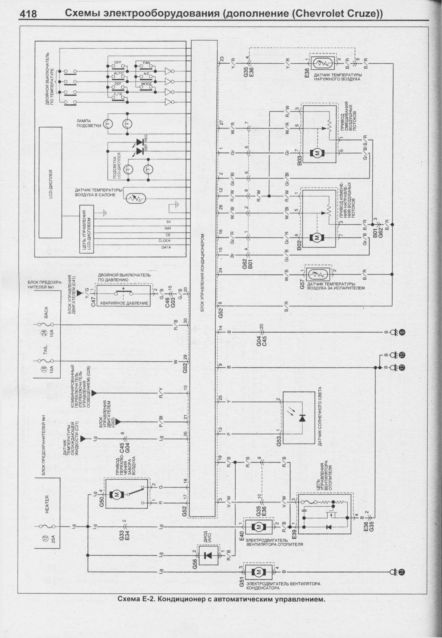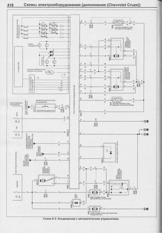 Электросхема отопителя, кондиционера, указателя поворотов и сигнализации Шевроле Круз